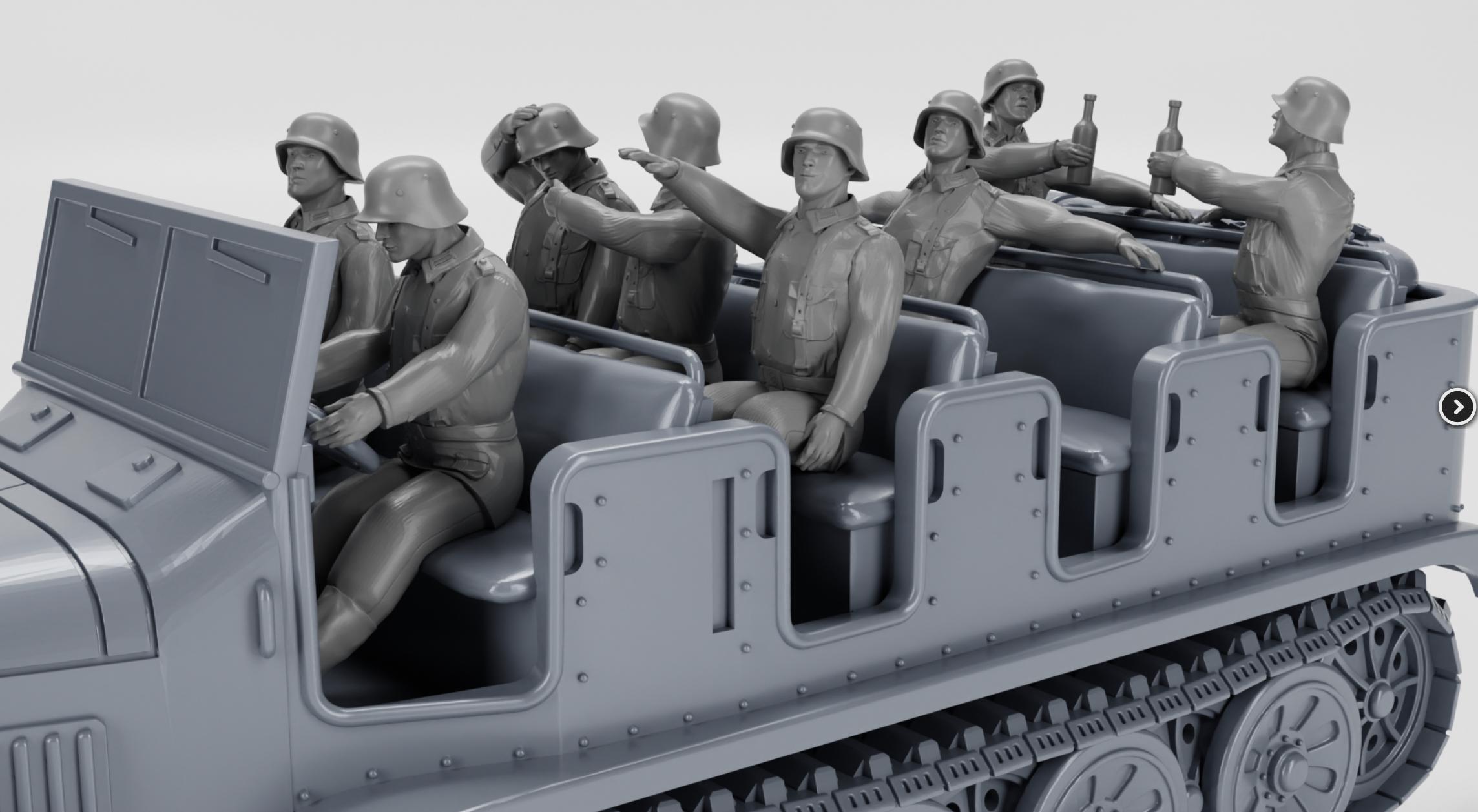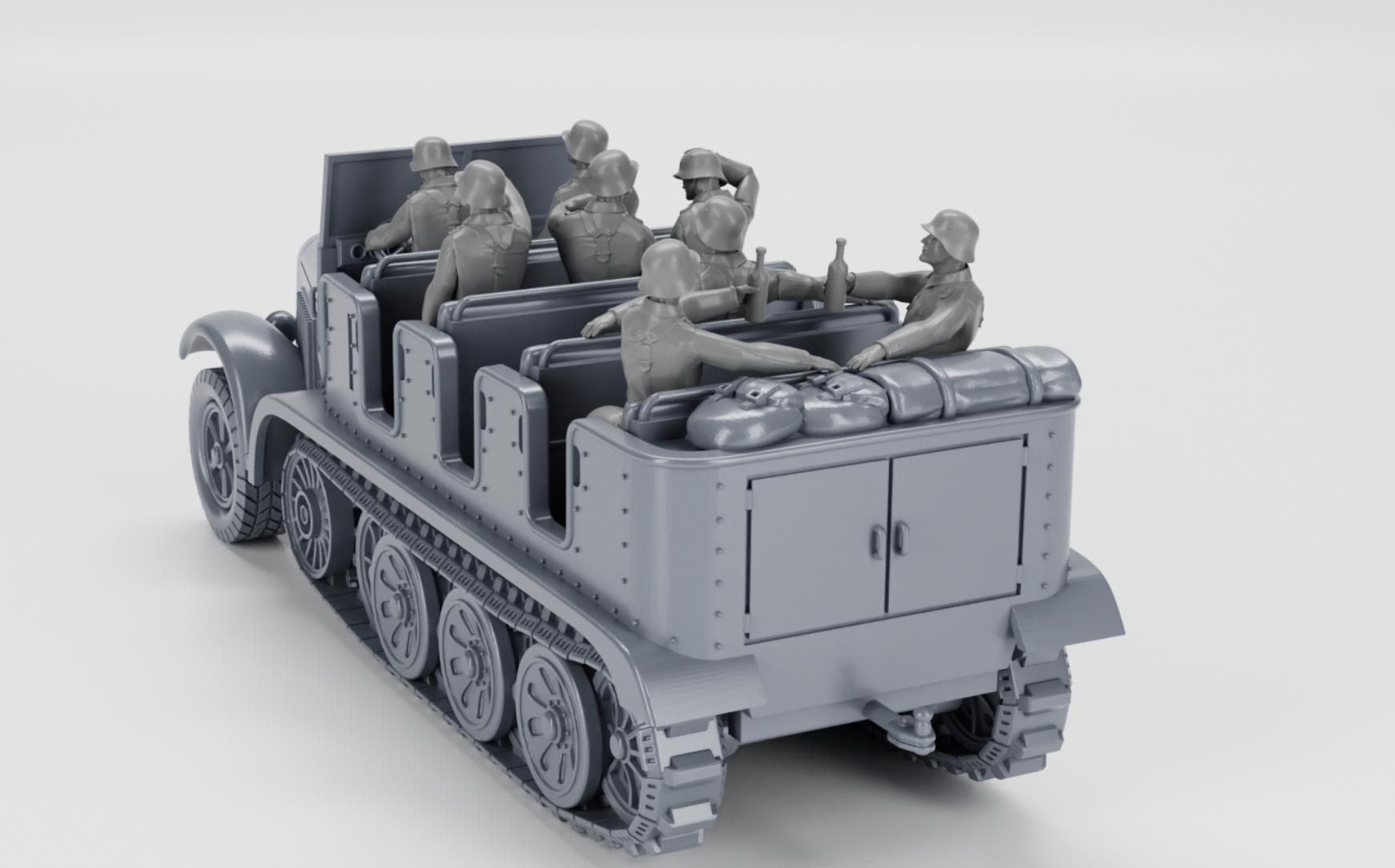 15mm, 28mm or 32mm World War 2- Resin Printed Half-track Sd.Kfz.6 Zugkraftwagen 5t + Crewmen (Germany, WW2)