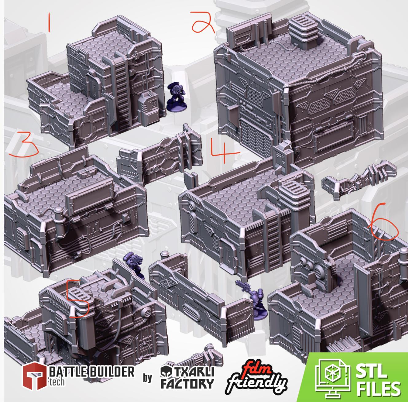 PLA Printed Terrain- Futuristic City Sci-Fi buildings-6 pack