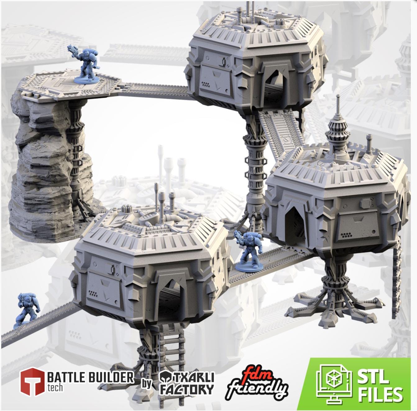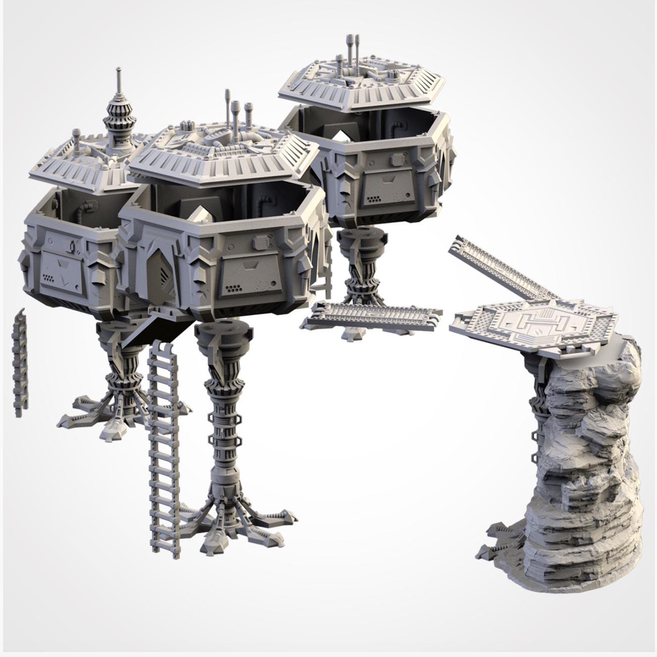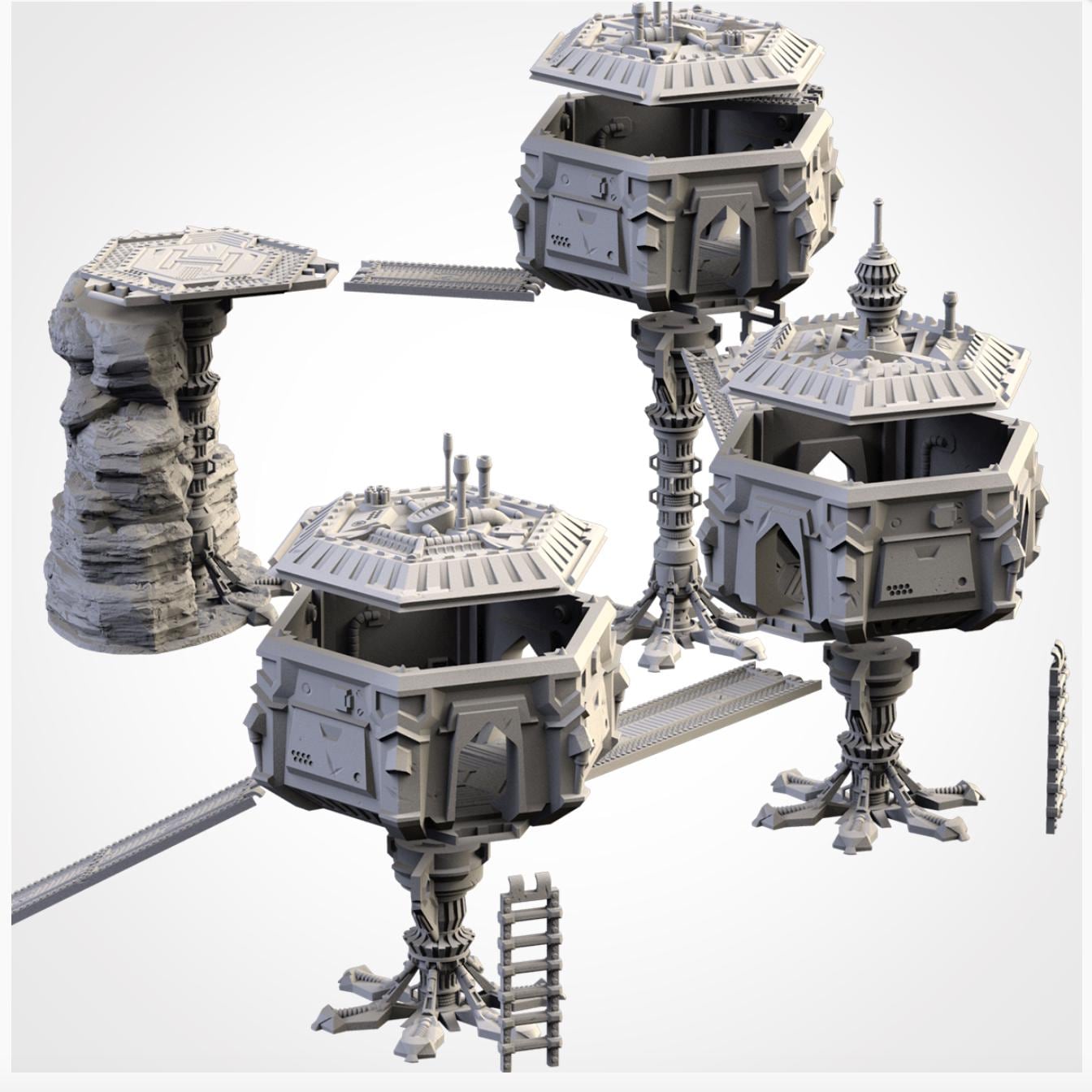PLA Printed Terrain-Sci-fi city 4 raised buildings