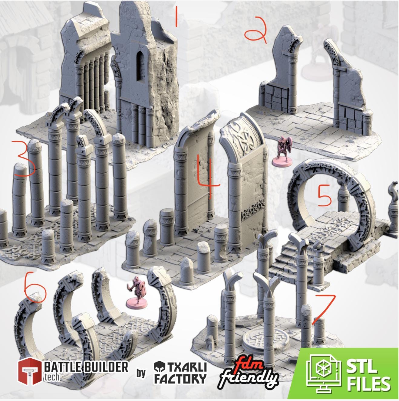PLA Printed Terrain- Ancient Civilizations- 7 Pack