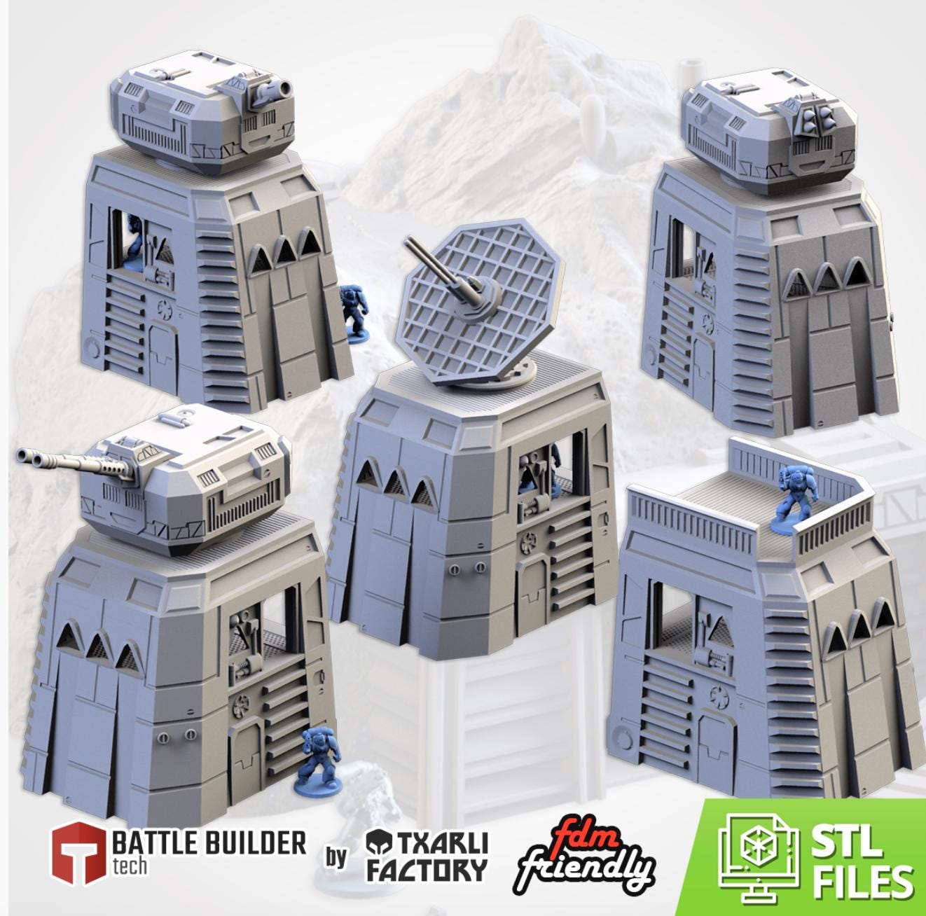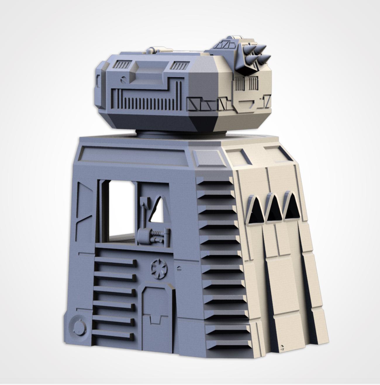 PLA Printed Terrain- Sci Fi Modular Defence Turrets