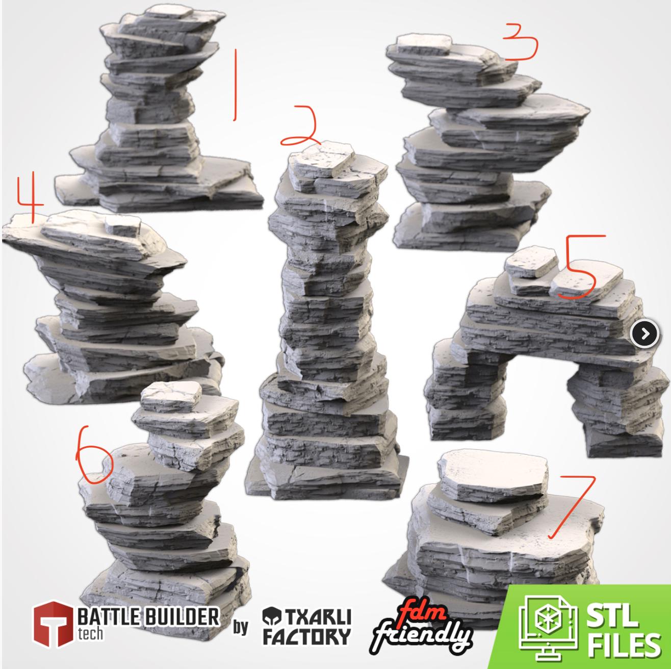 PLA Printed Terrain- Desert Mountains-7 Pack