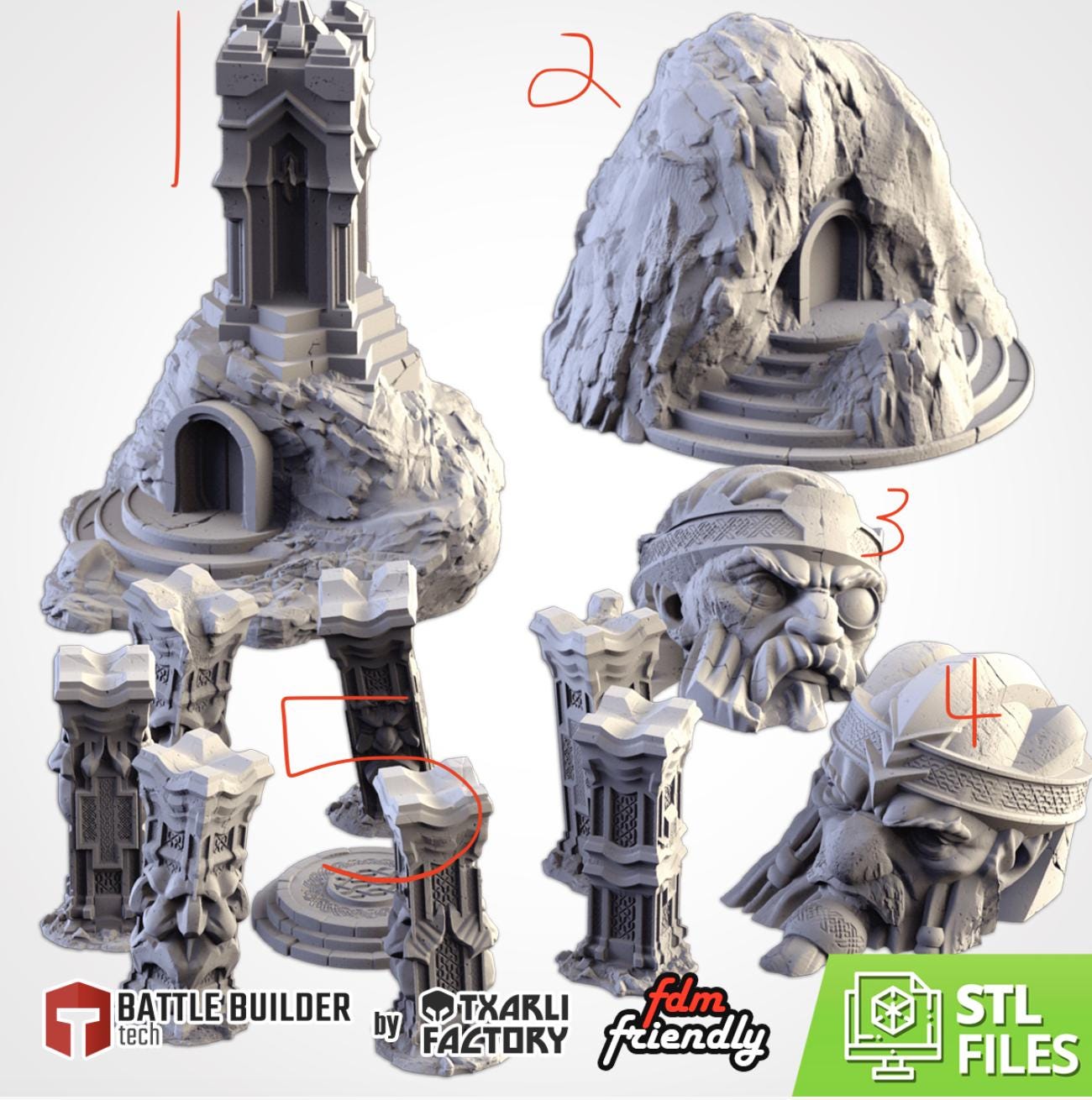 PLA Printed Terrain- Dwarf Village- 5 Pack