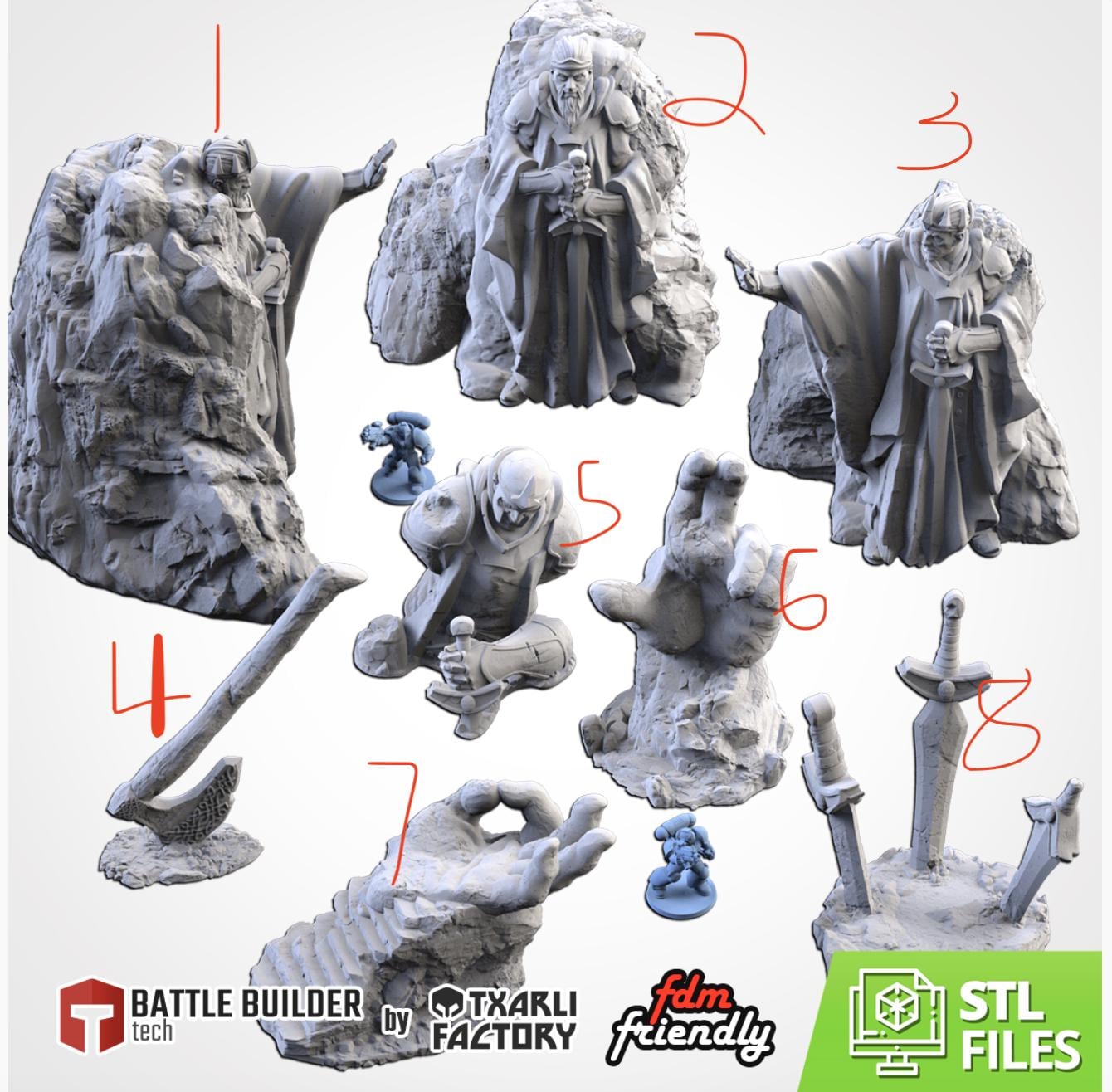 PLA Printed Terrain- Middle Earth Statues- 8 Pack