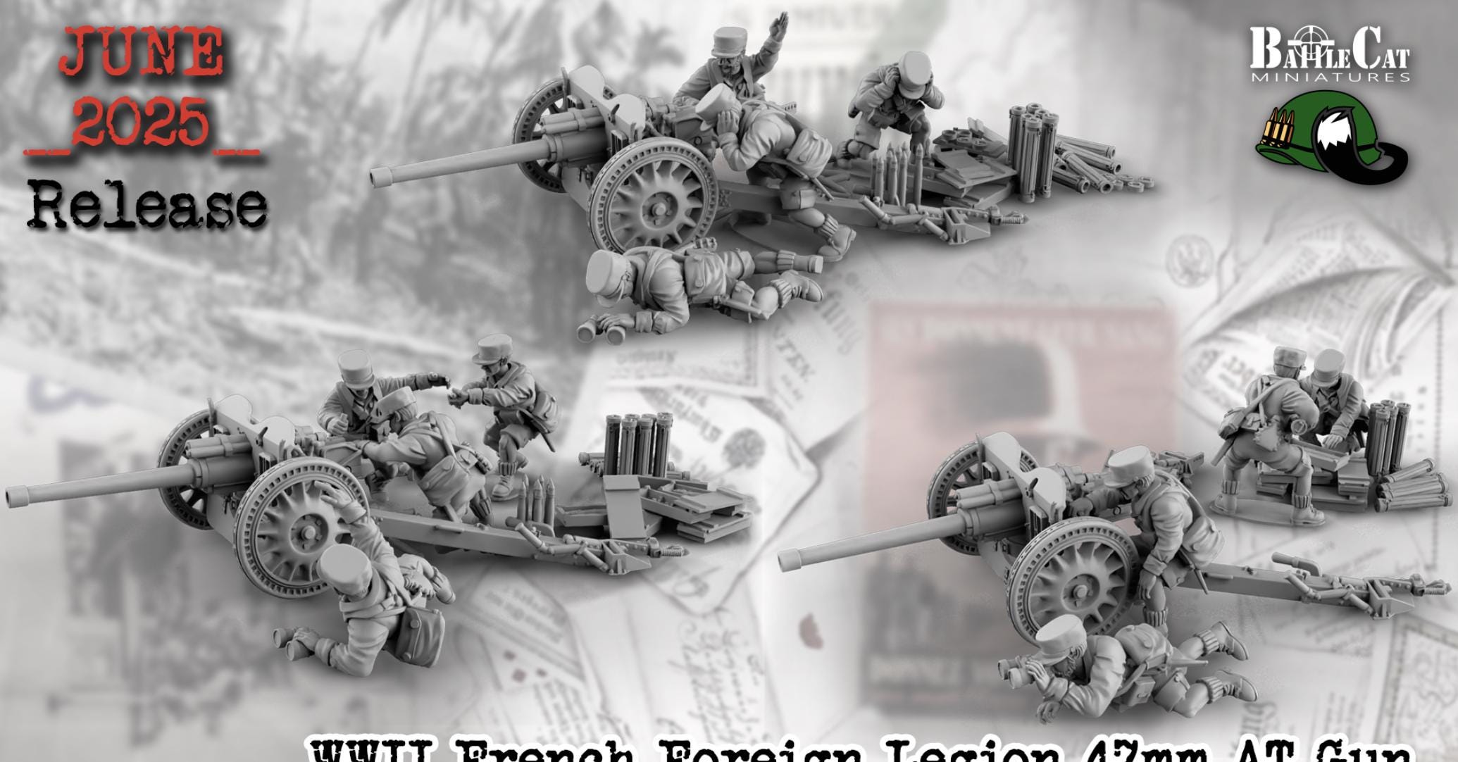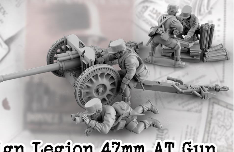 28mm World War 2- Resin Printed WWII French Foreing Legion 47mm AT Gun
