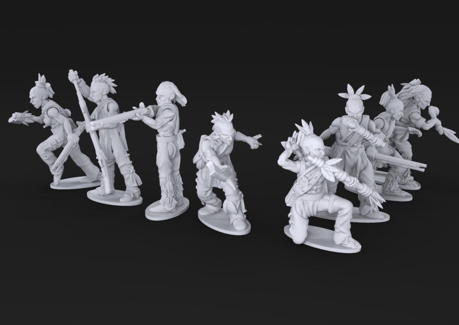 28mm Historical Gaming- Resin Printed Figures- FIW/AWI Native americans in winter clothes (Squad of 20)