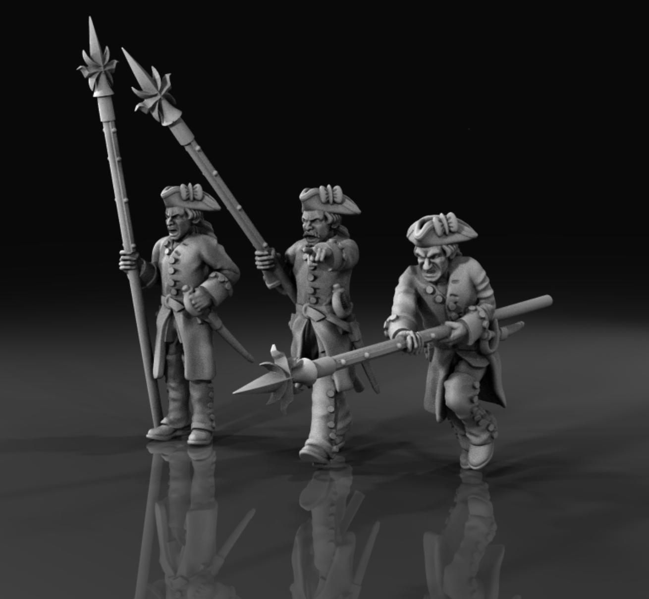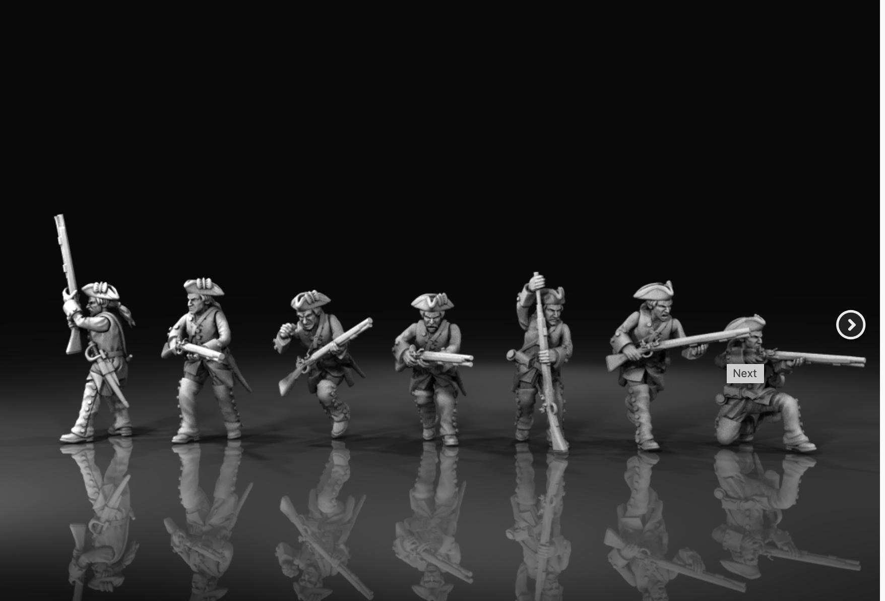 28mm Historical Gaming- Resin Printed Figures- French indian wars compangie frachase de la marine (Squad of 20 including command)