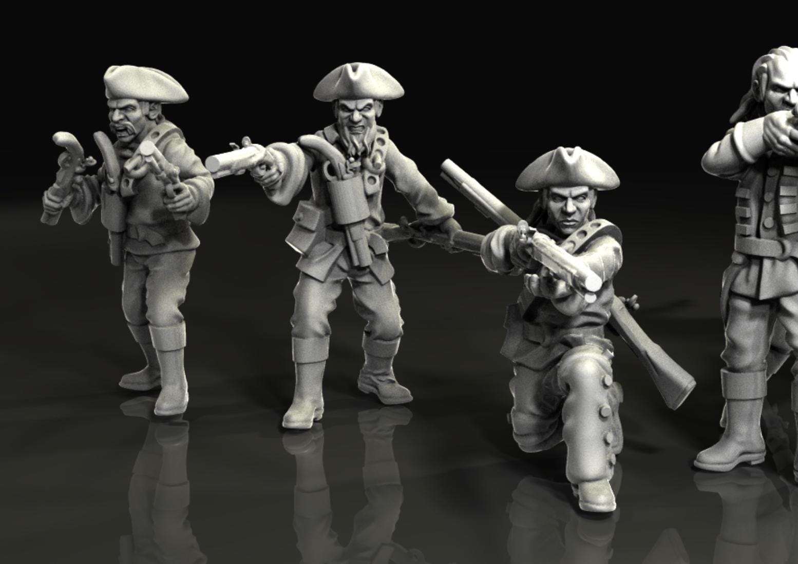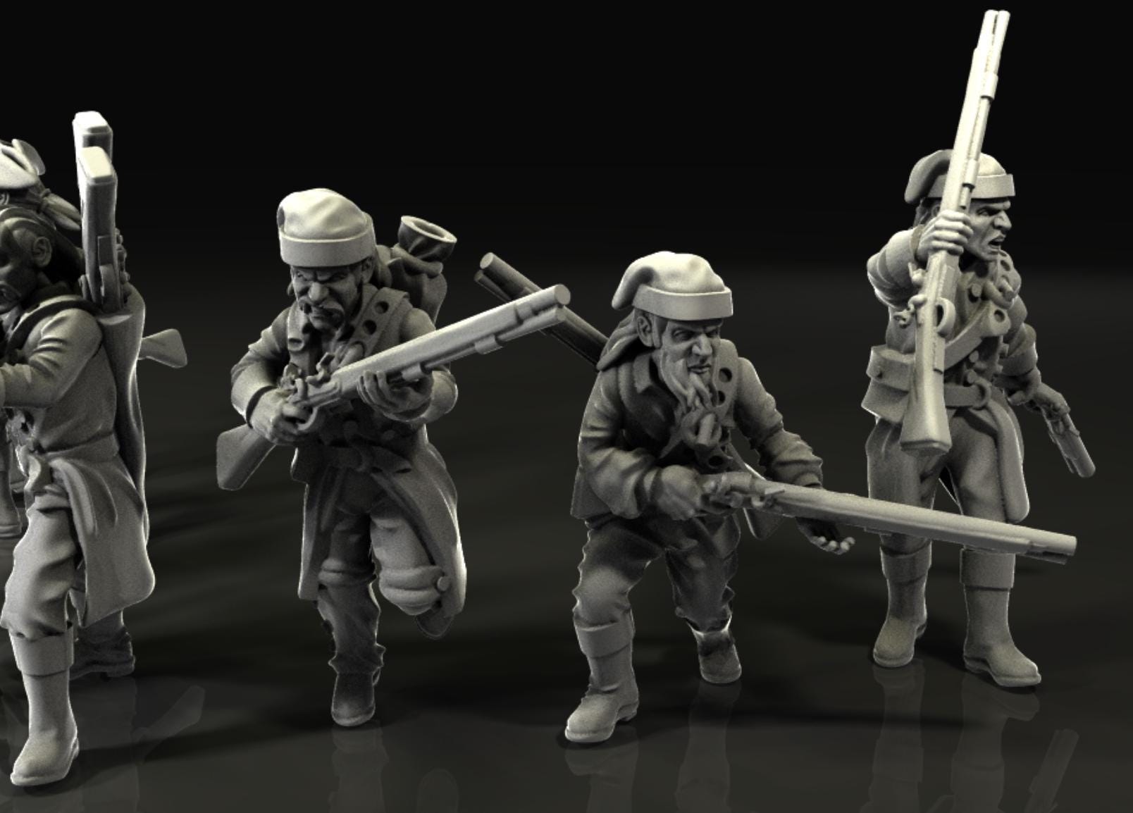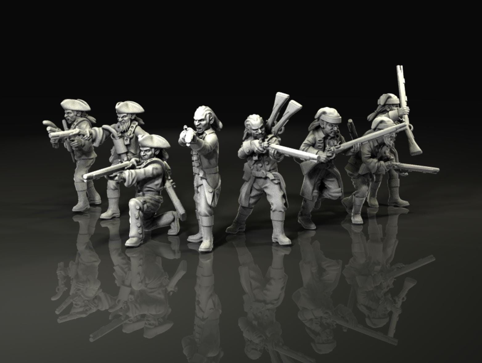 28mm Historical Gaming- Resin Printed Figures- 1750 colonial militas (Squad of 20)