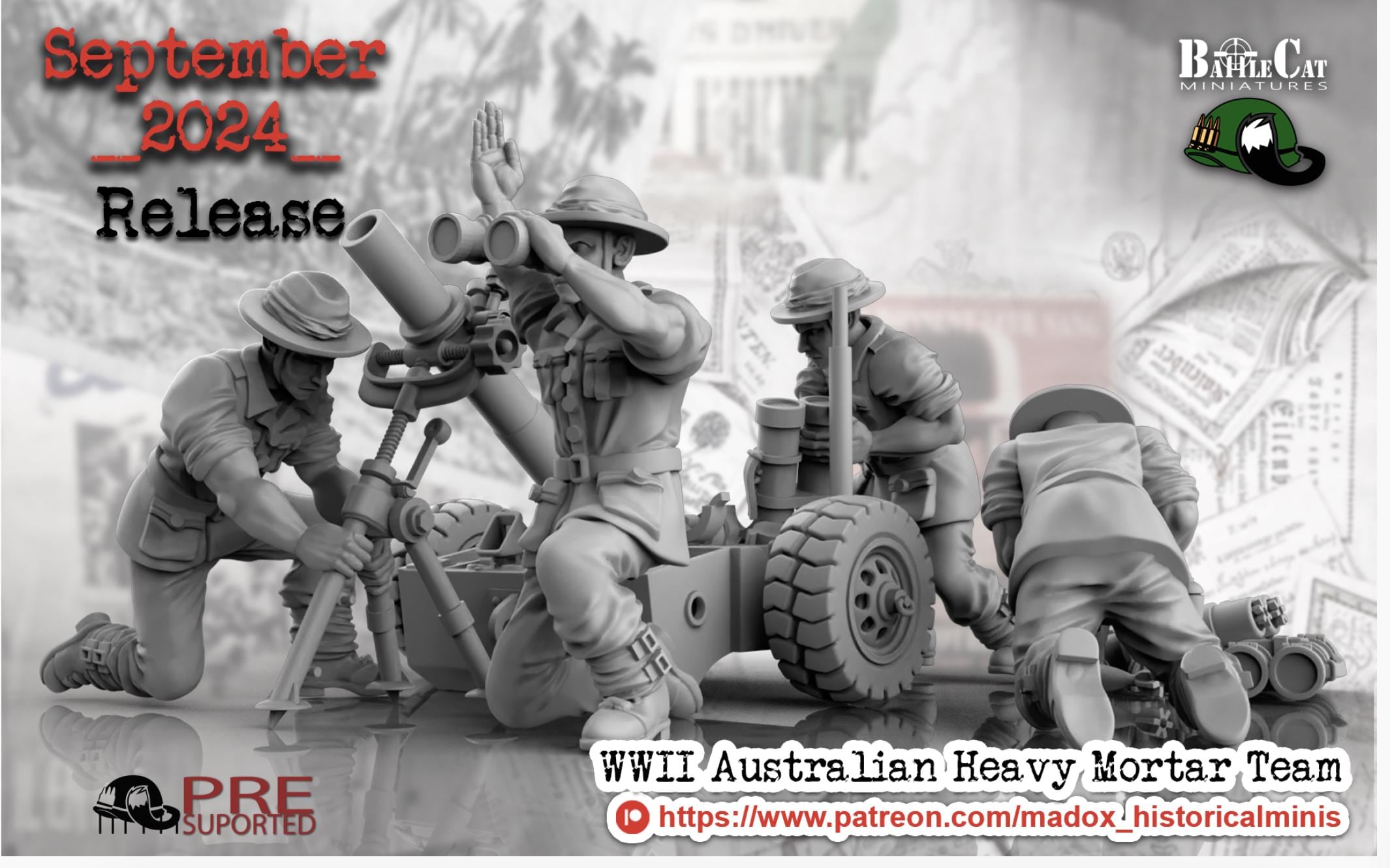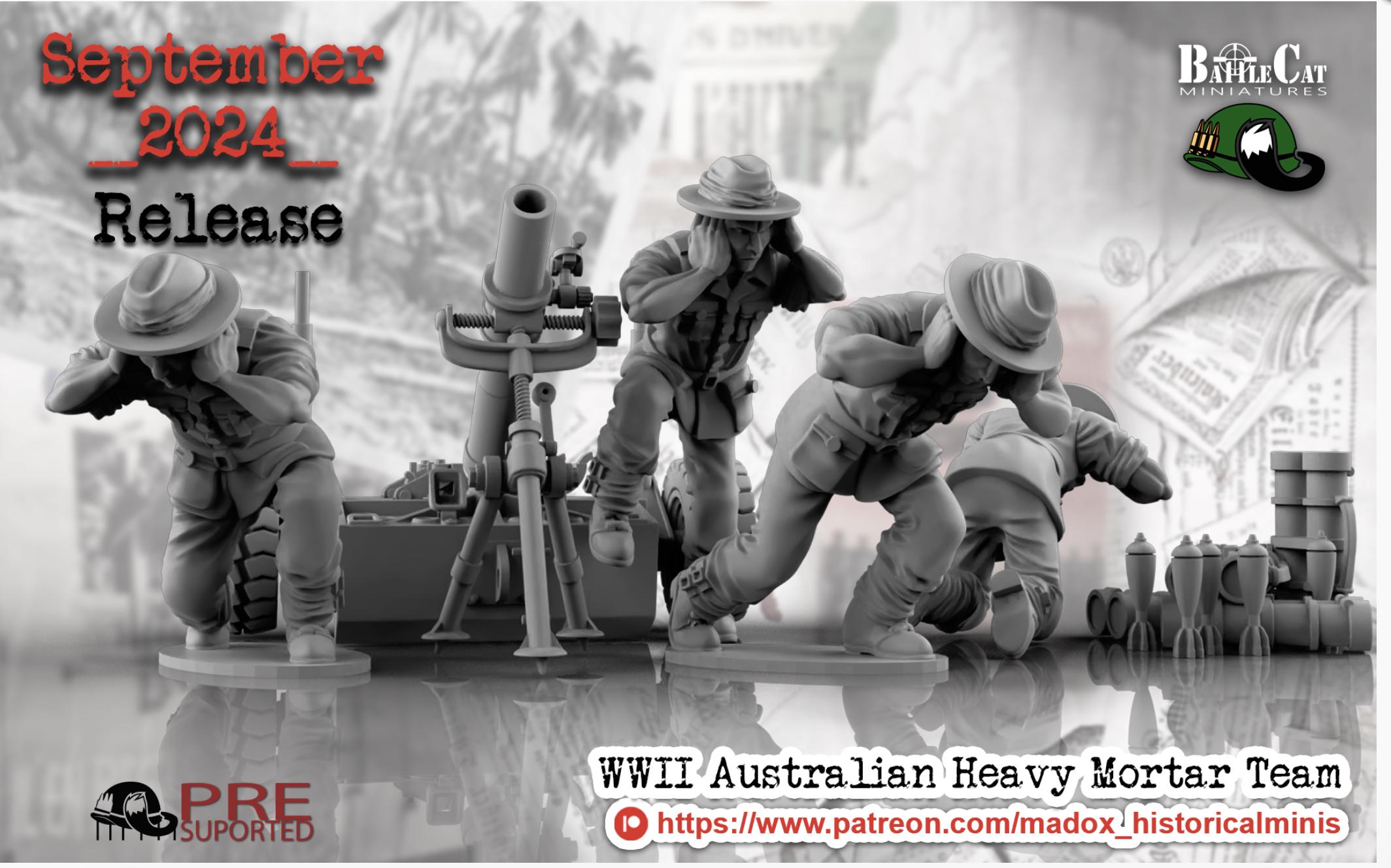 28mm World War 2- Resin Printed WWII Australian Heavy mortar (3 Pack)