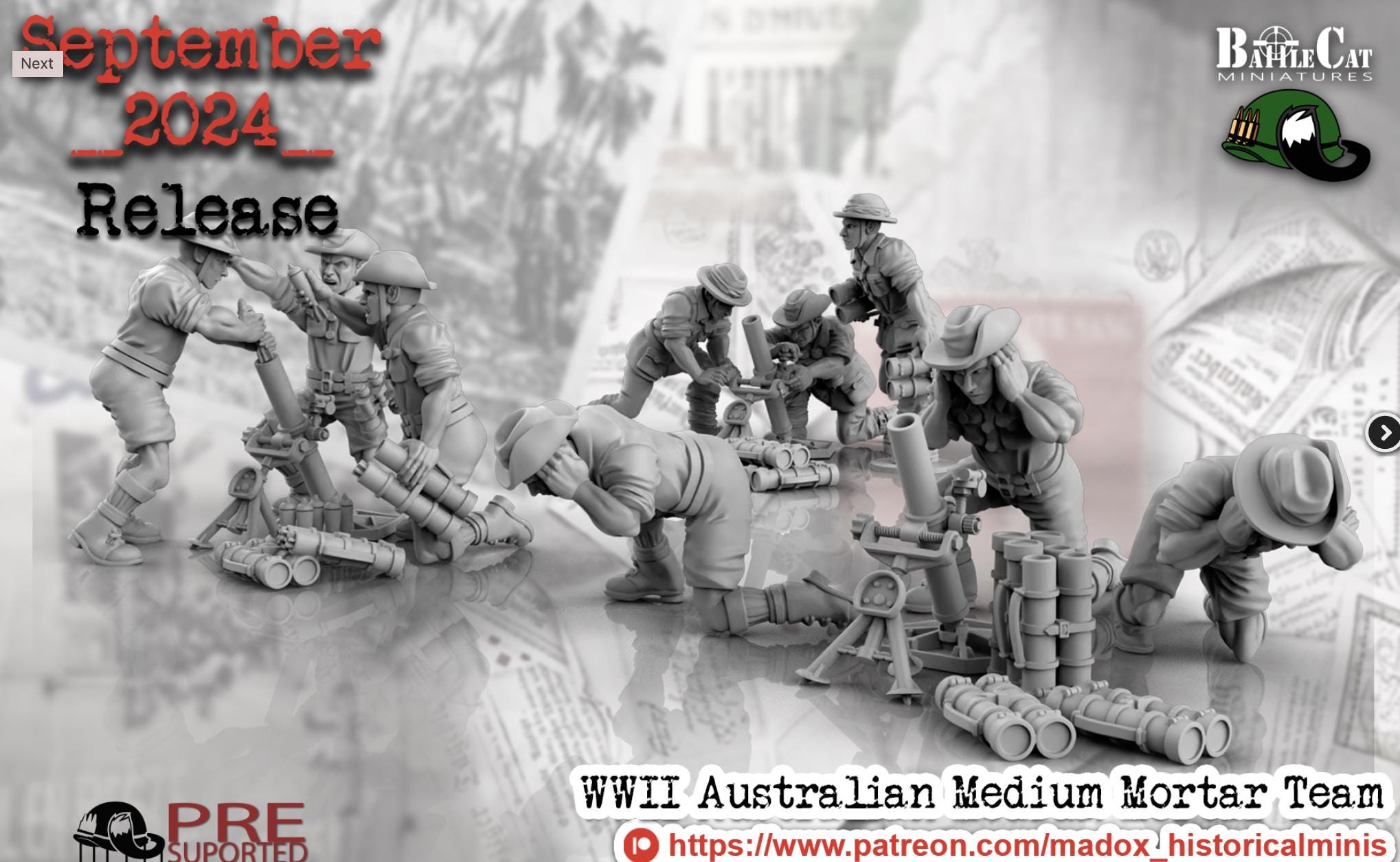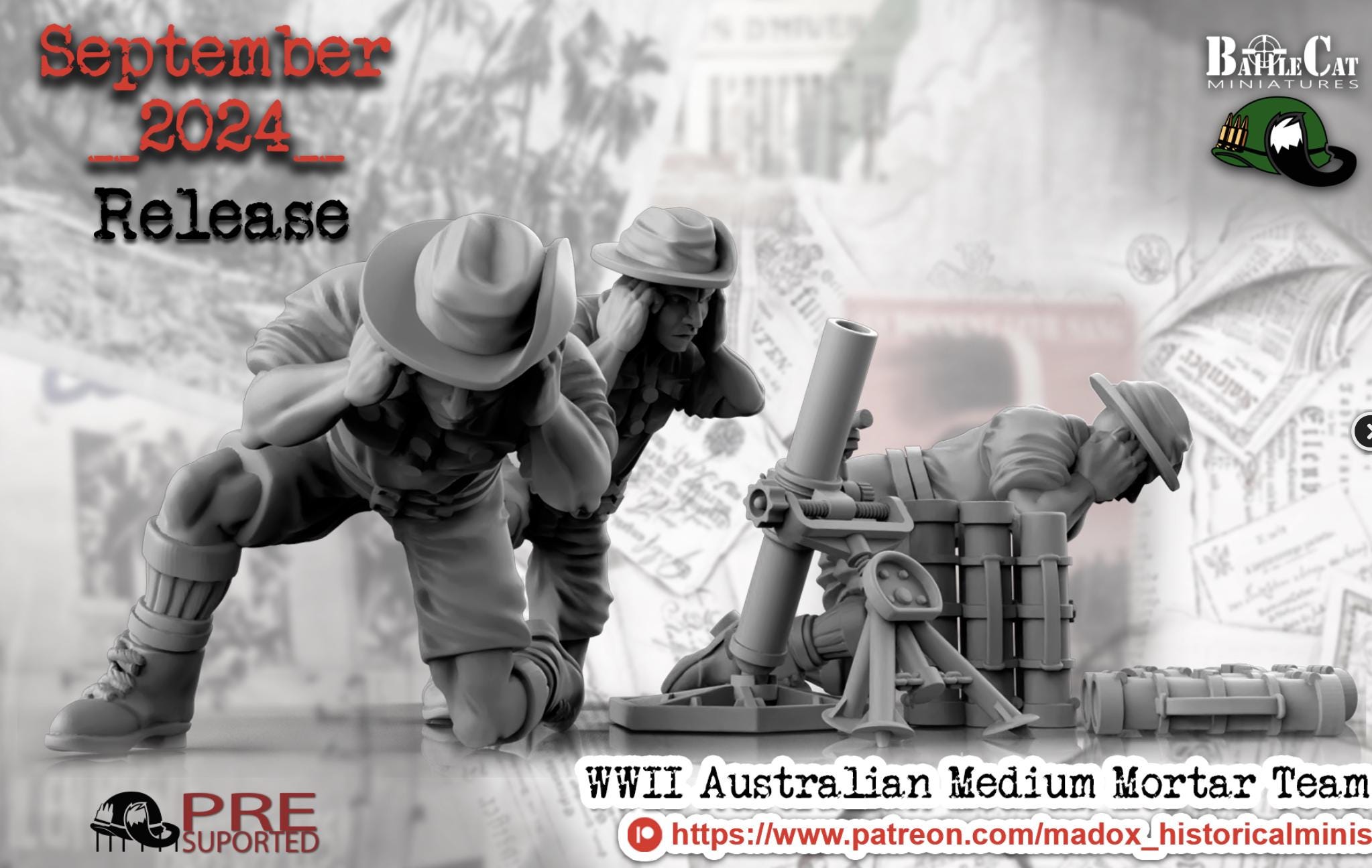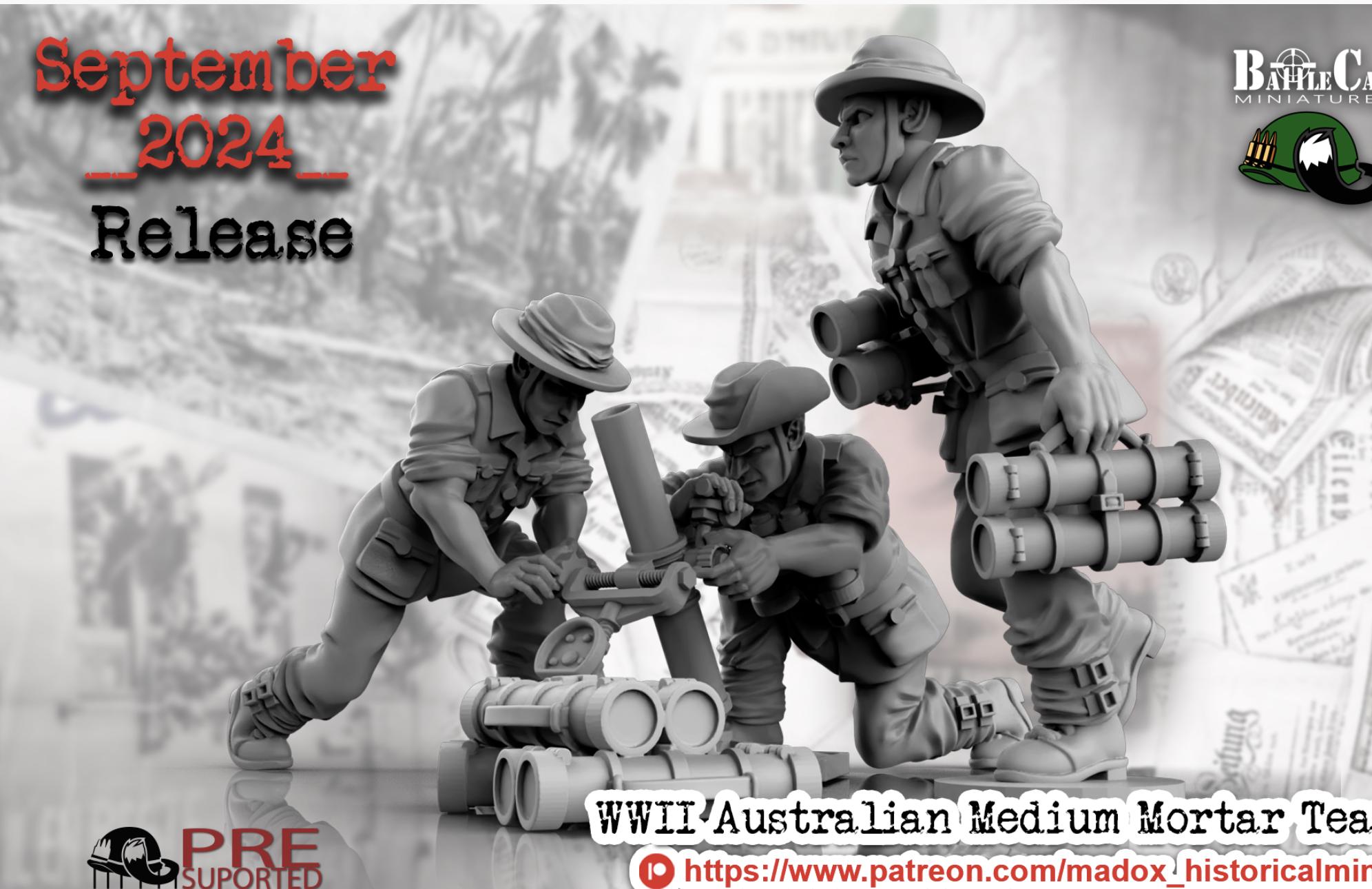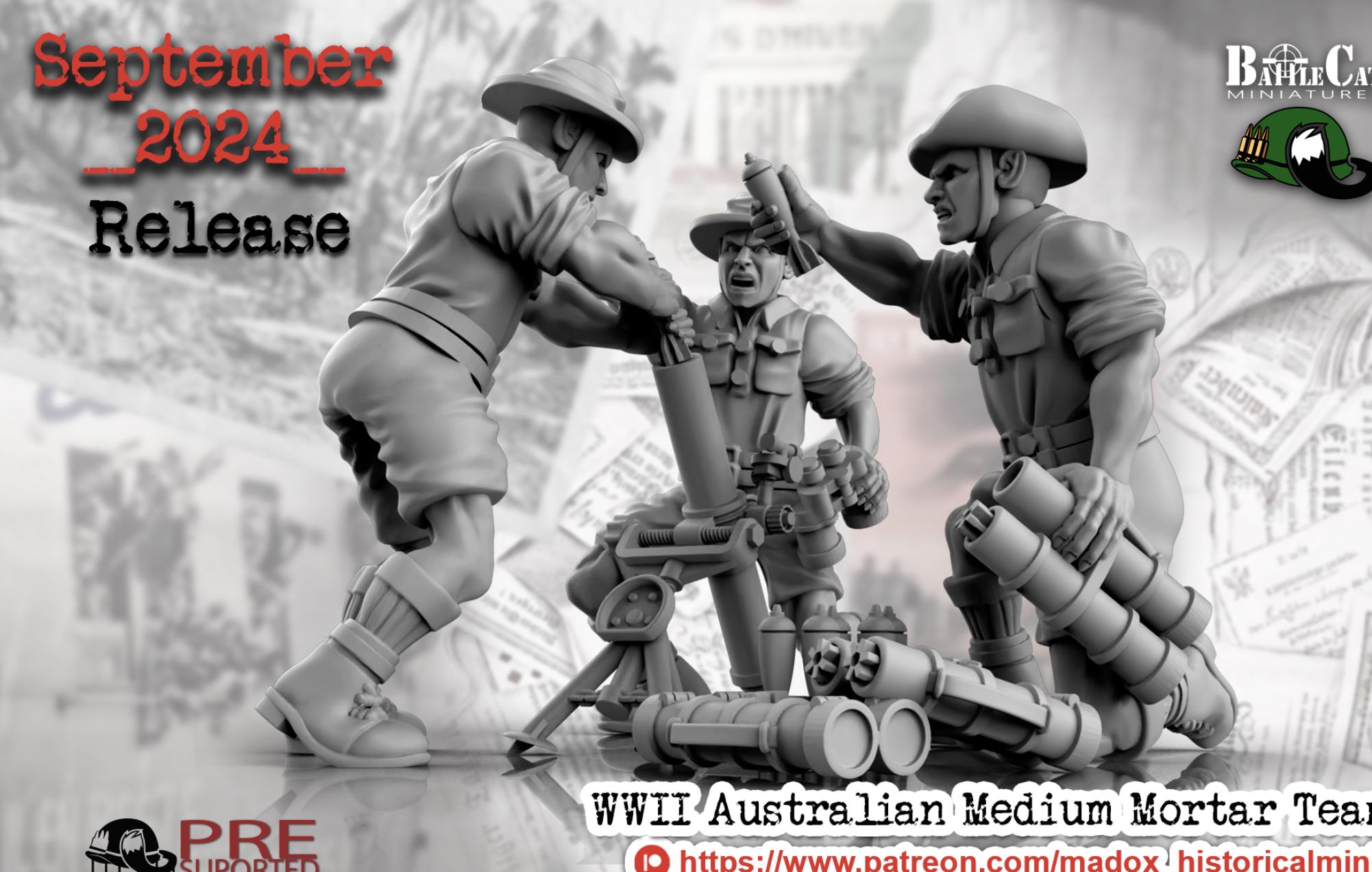 28mm World War 2- Resin Printed WWII Australian medium mortar (3 Pack)