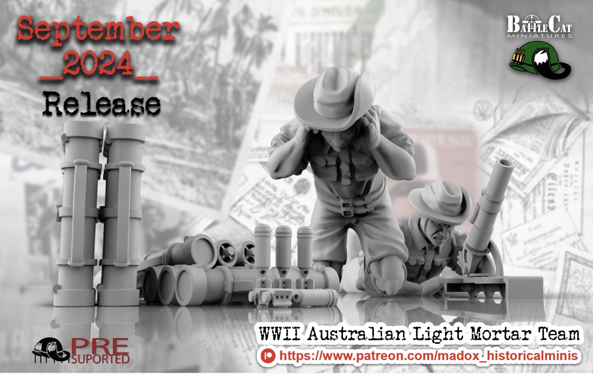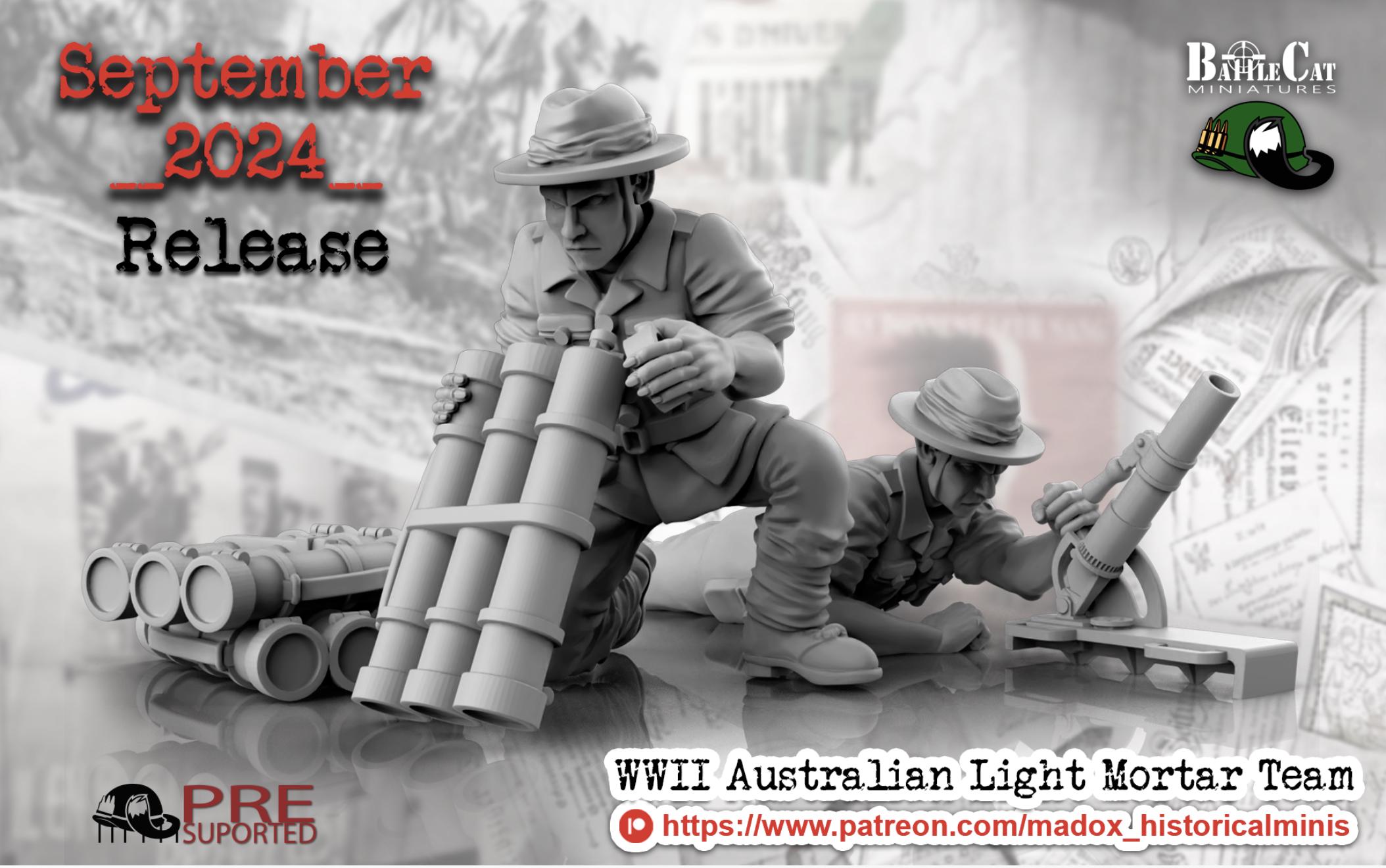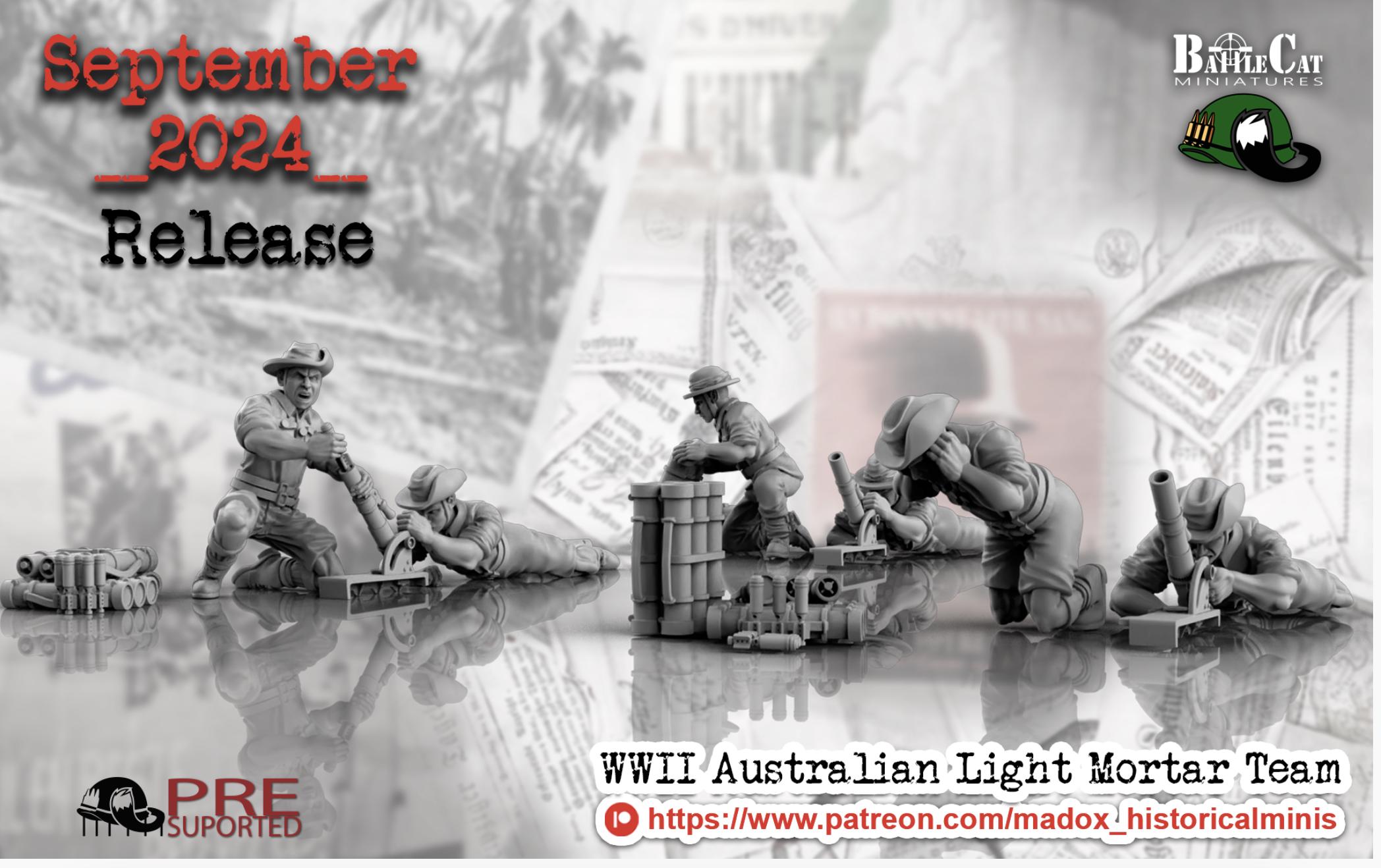 28mm World War 2- Resin Printed WWII Australian Light Mortar (3 Pack)