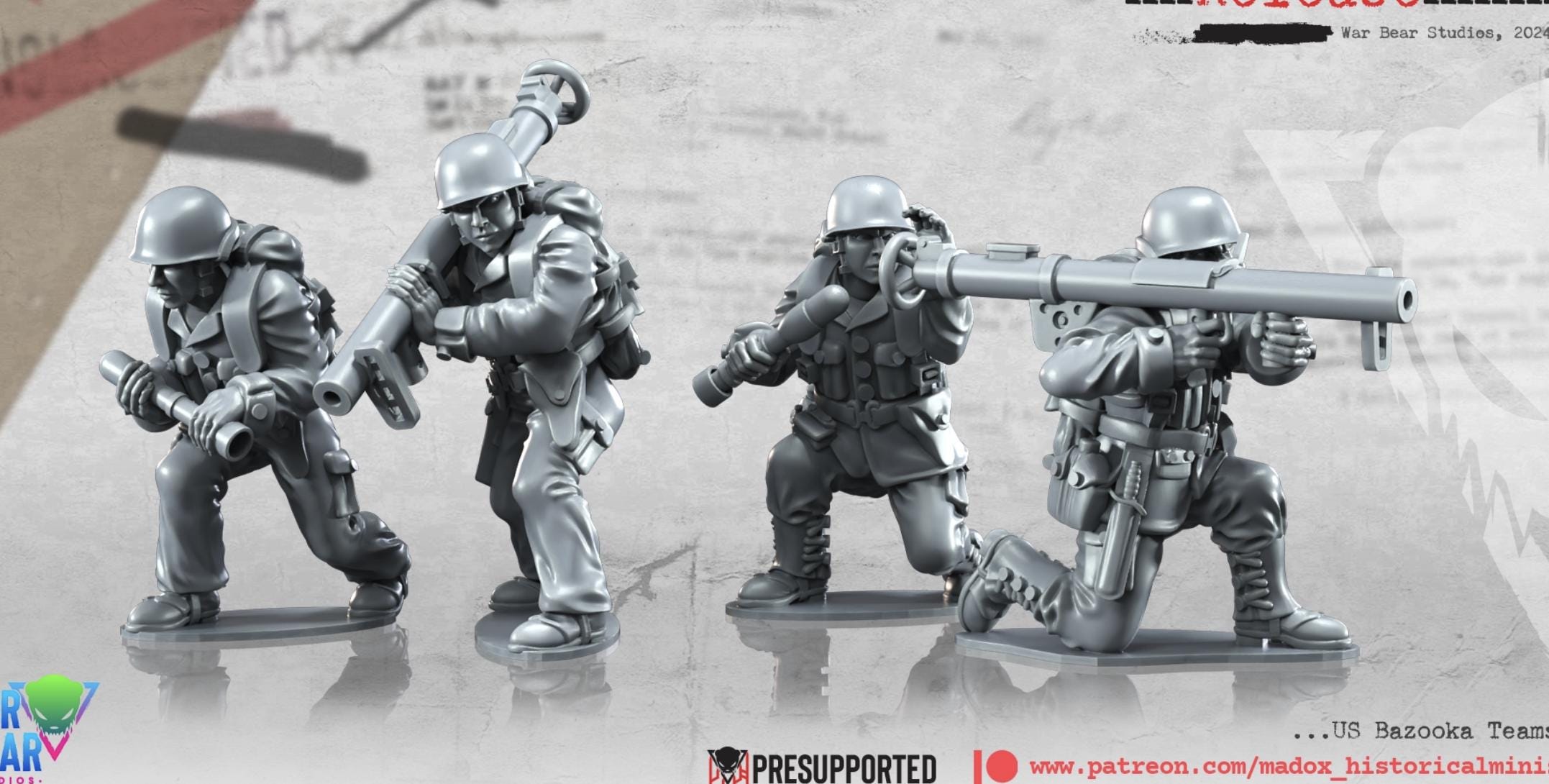 28mm World War 2- Resin Printed WWII US Army in the pacific Bazooka teams (3 Pack)
