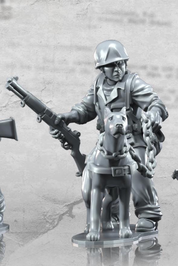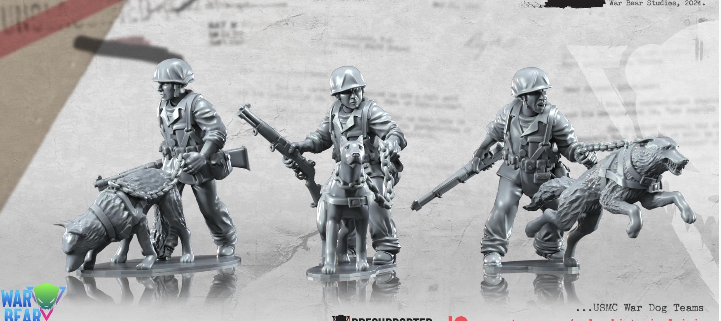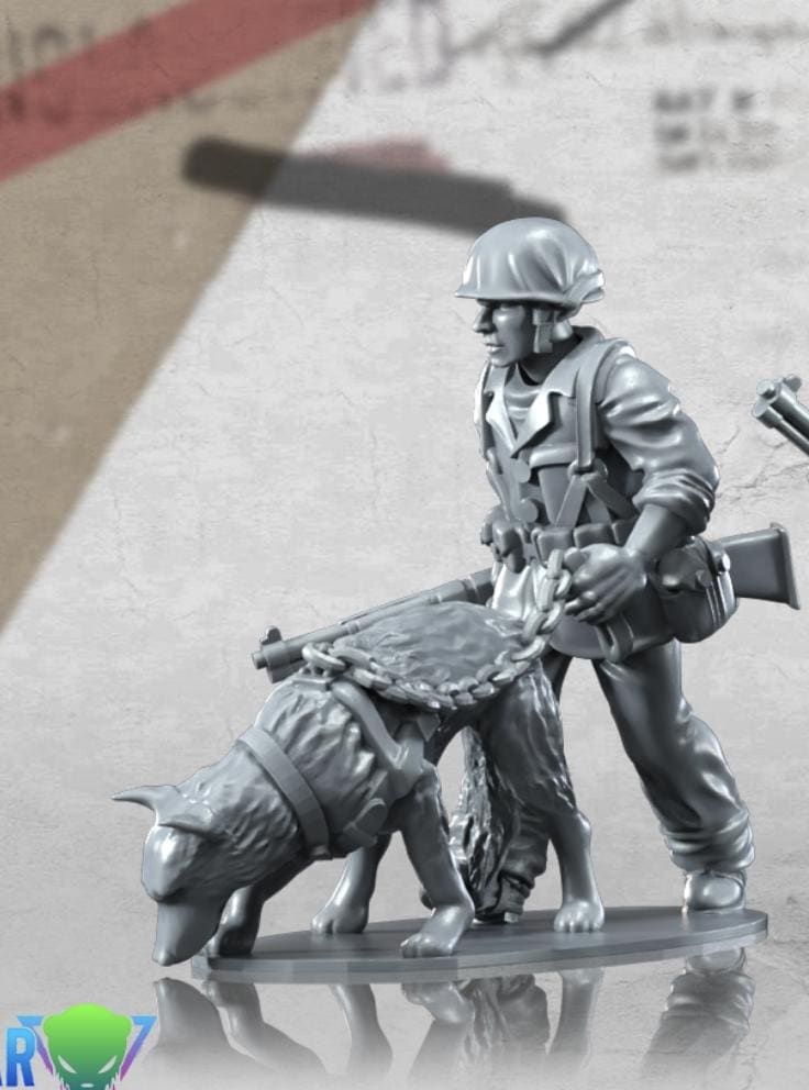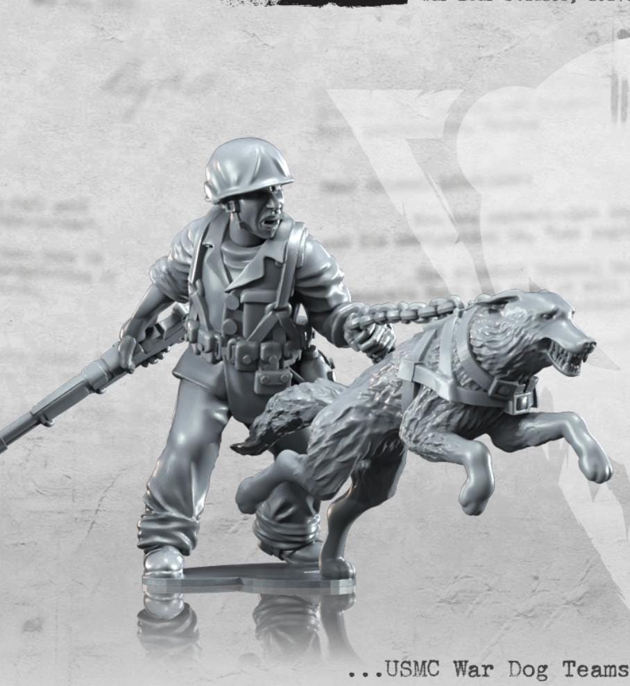 28mm World War 2- Resin Printed WWII USMC War dog Teams (6 figures)