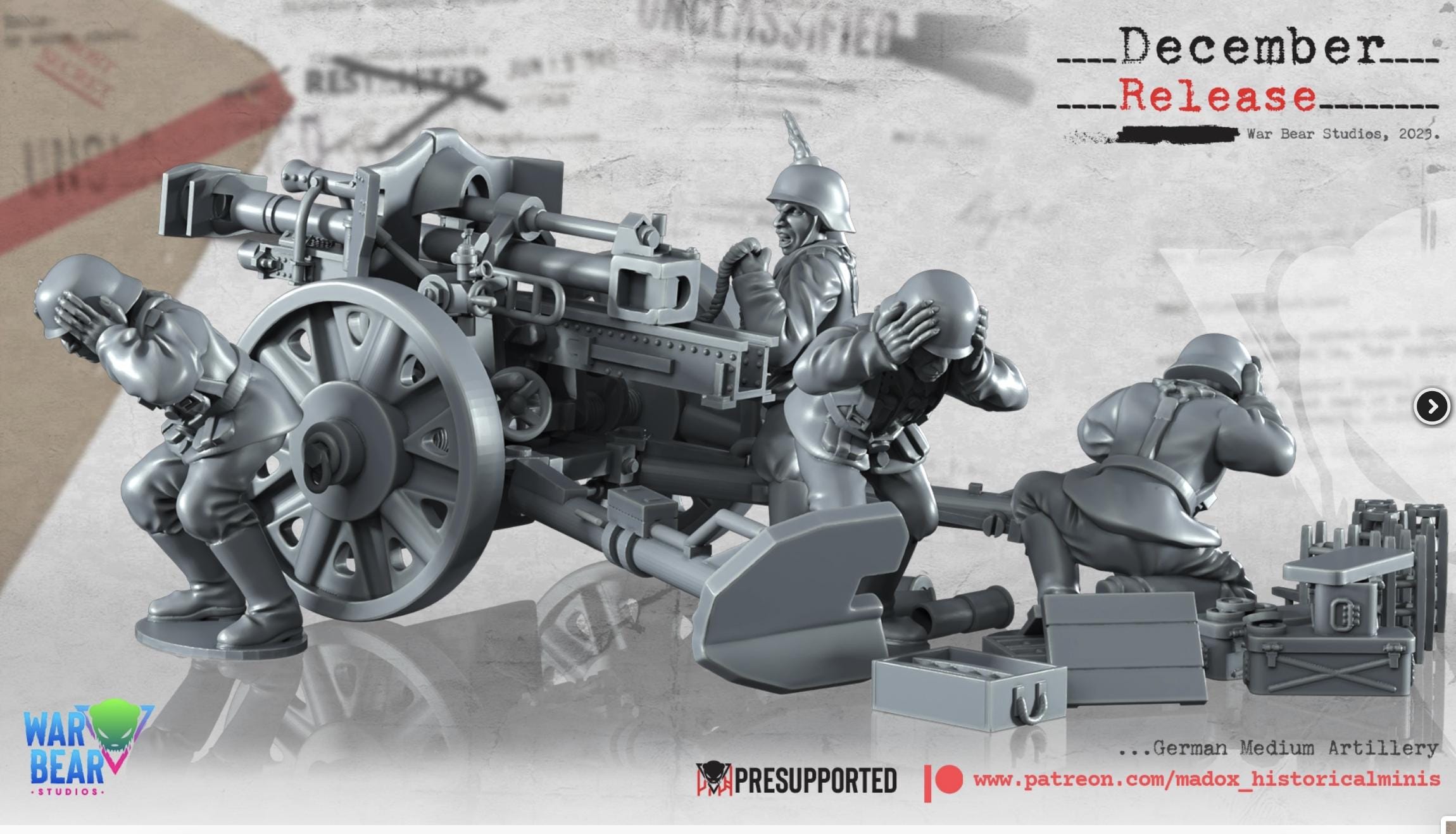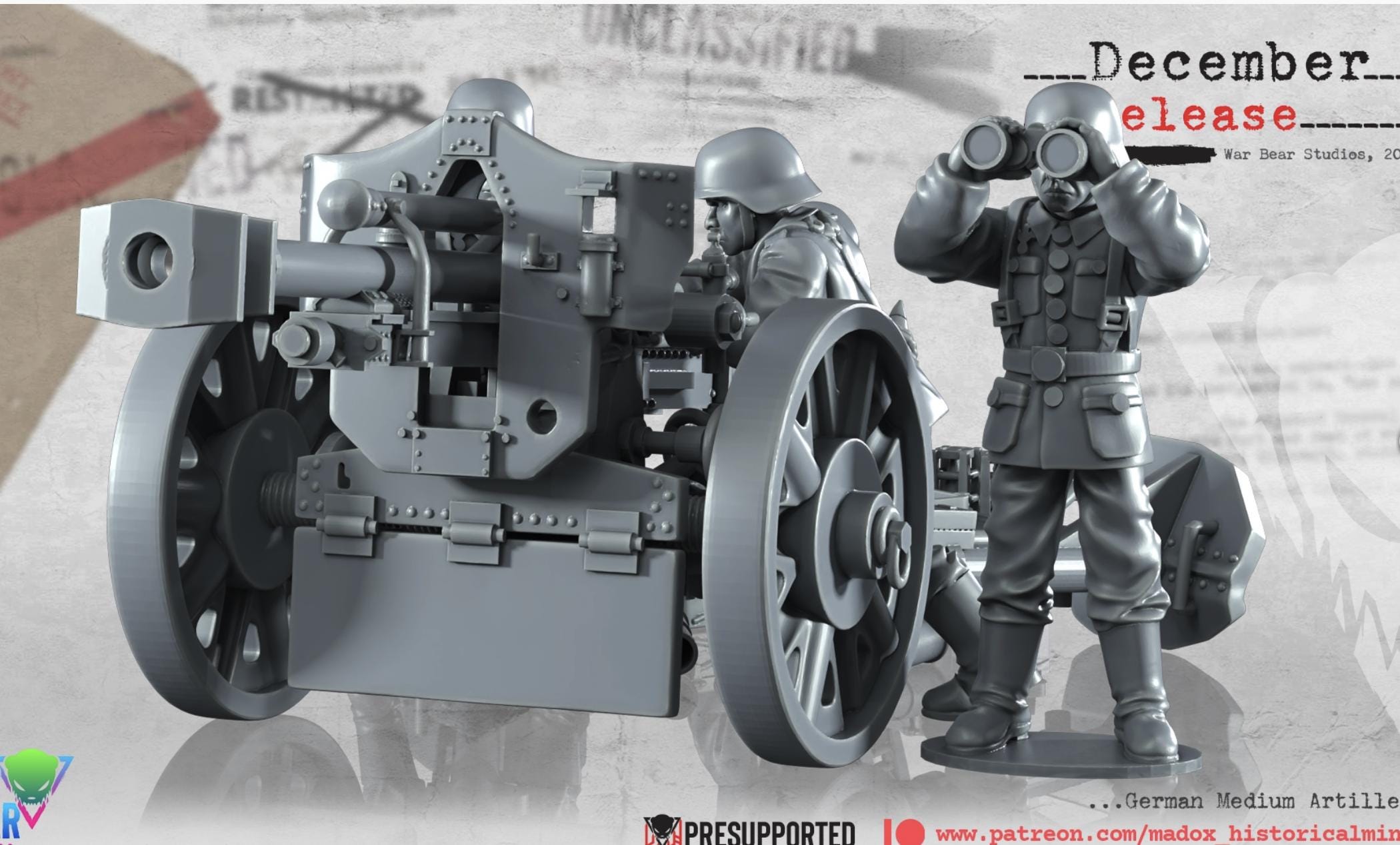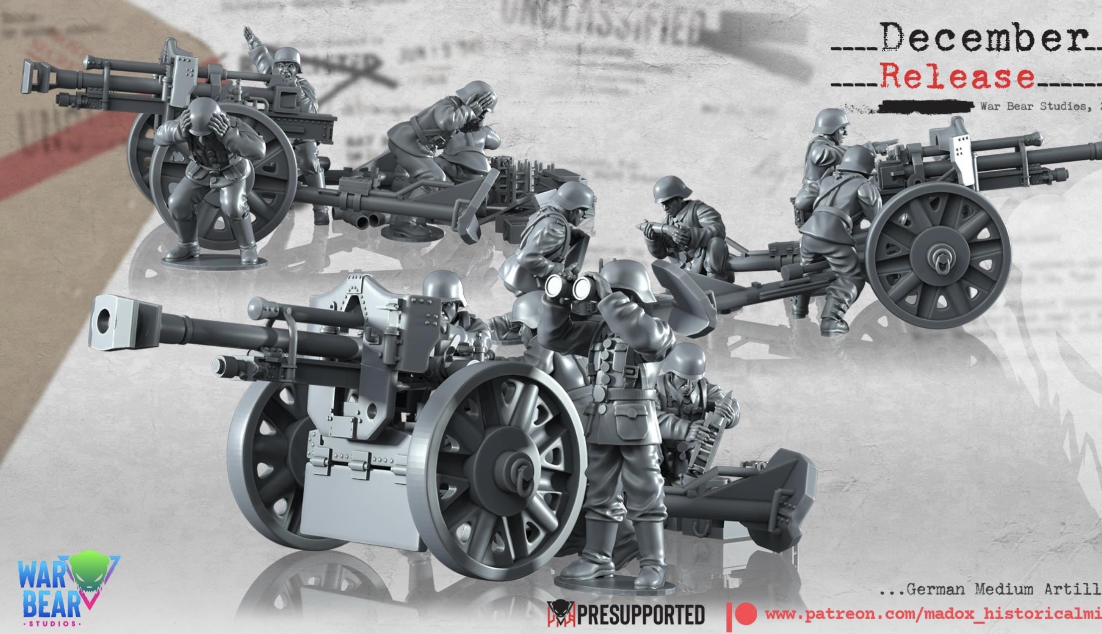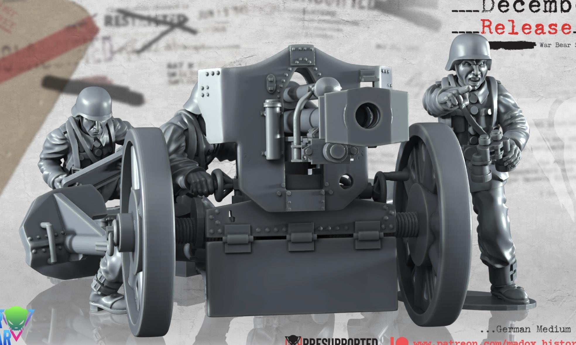 28mm World War 2- Resin Printed WWII German Medium artillery (3 Pack)