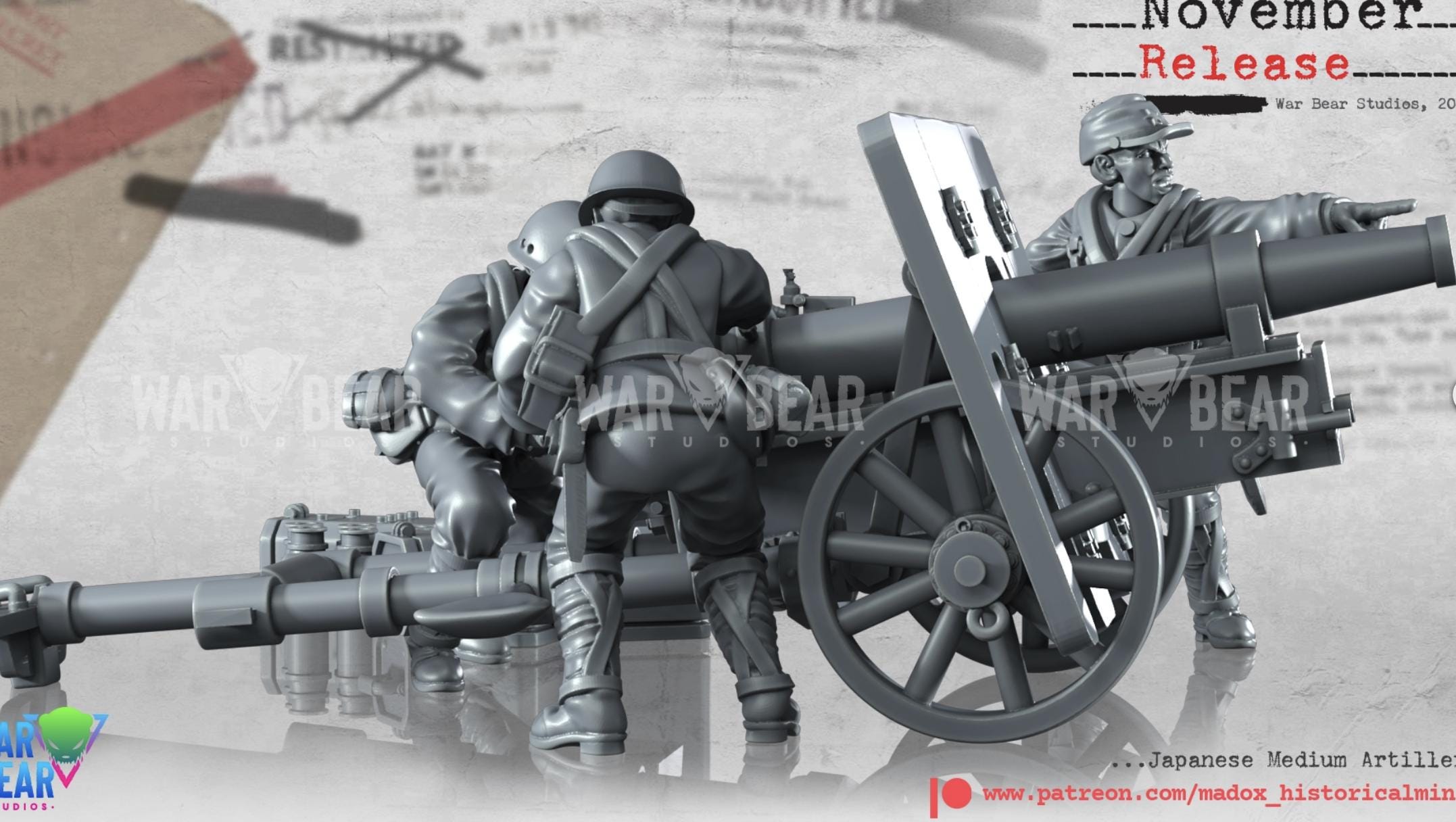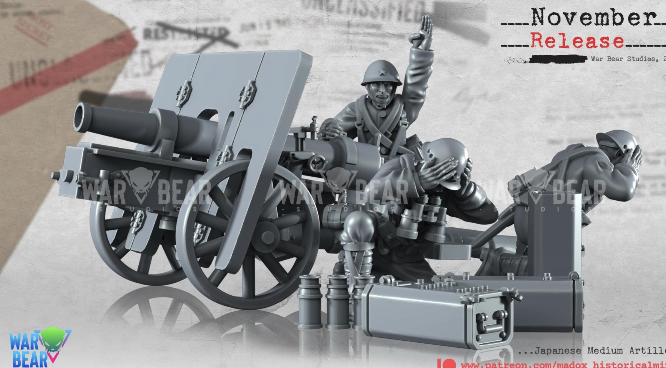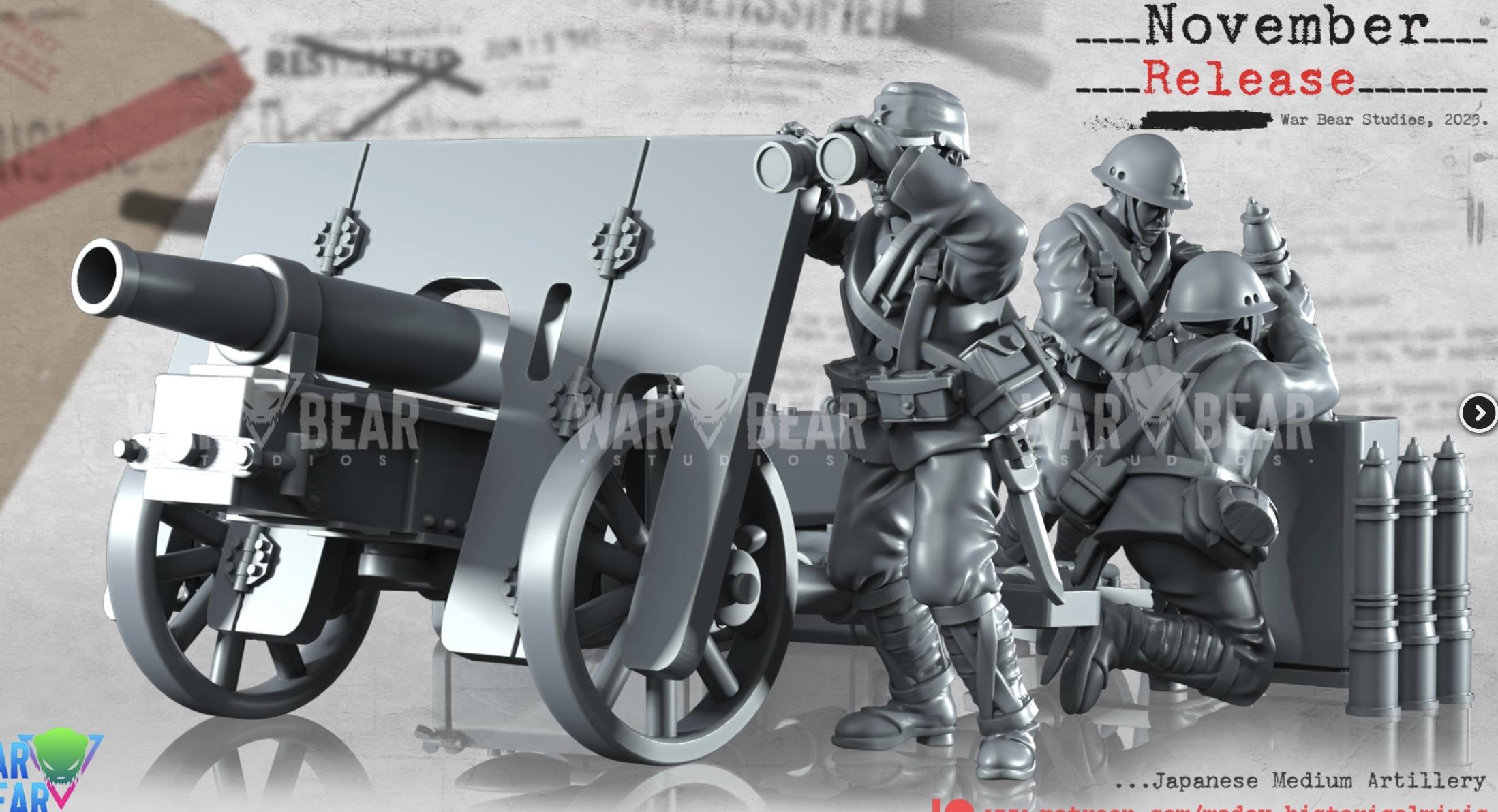 28mm World War 2- Resin Printed WWII Japanese Medium artillery (3 Pack)