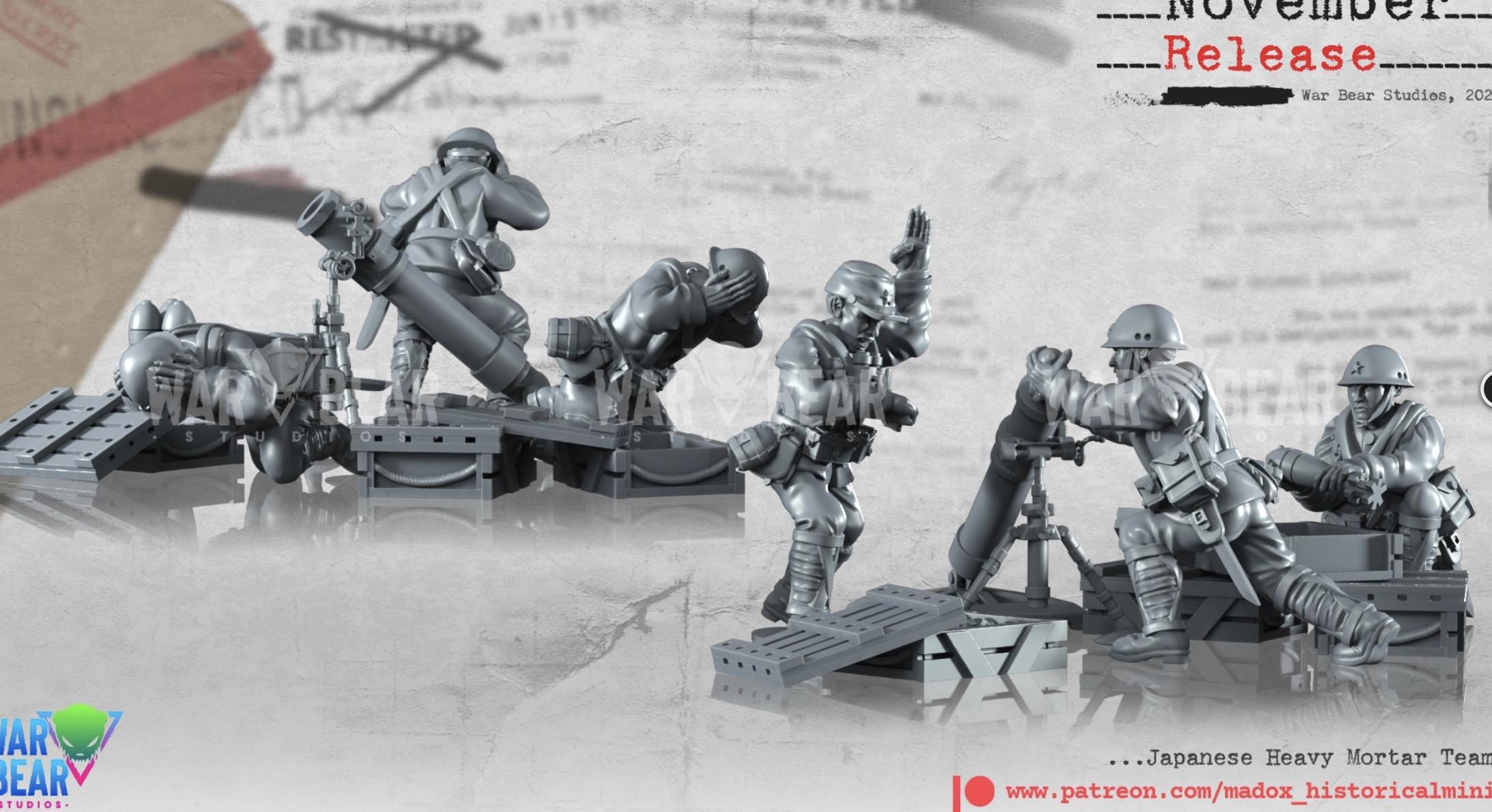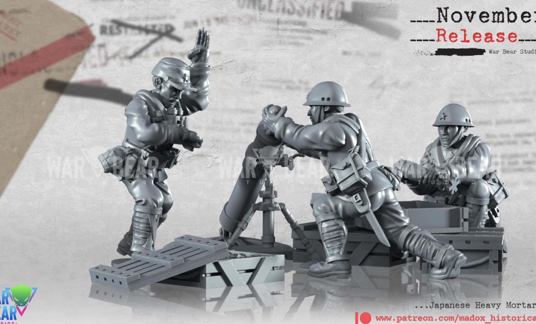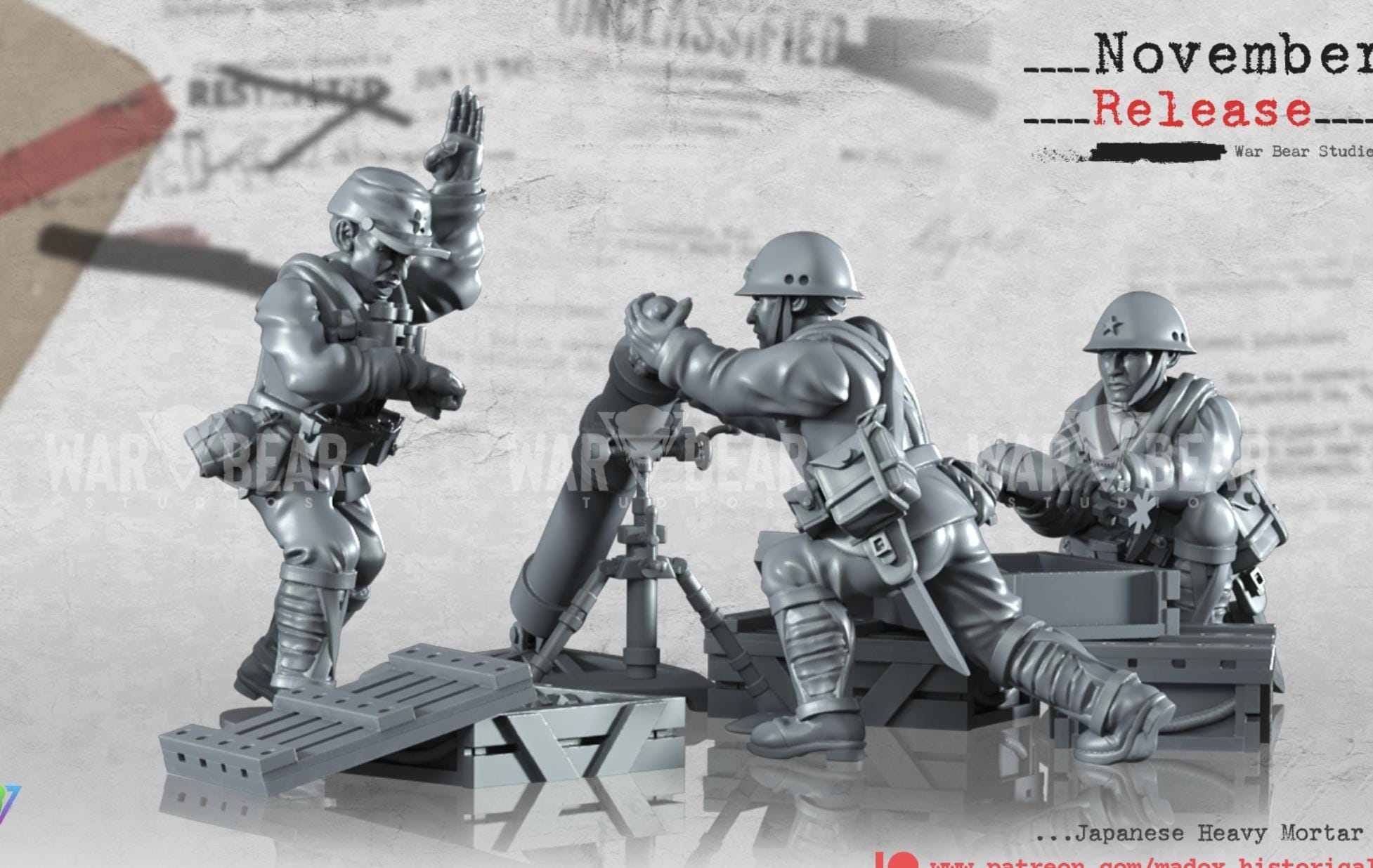 28mm World War 2- Resin Printed WWII Japanese Heavy Mortar teams (3 Pack)
