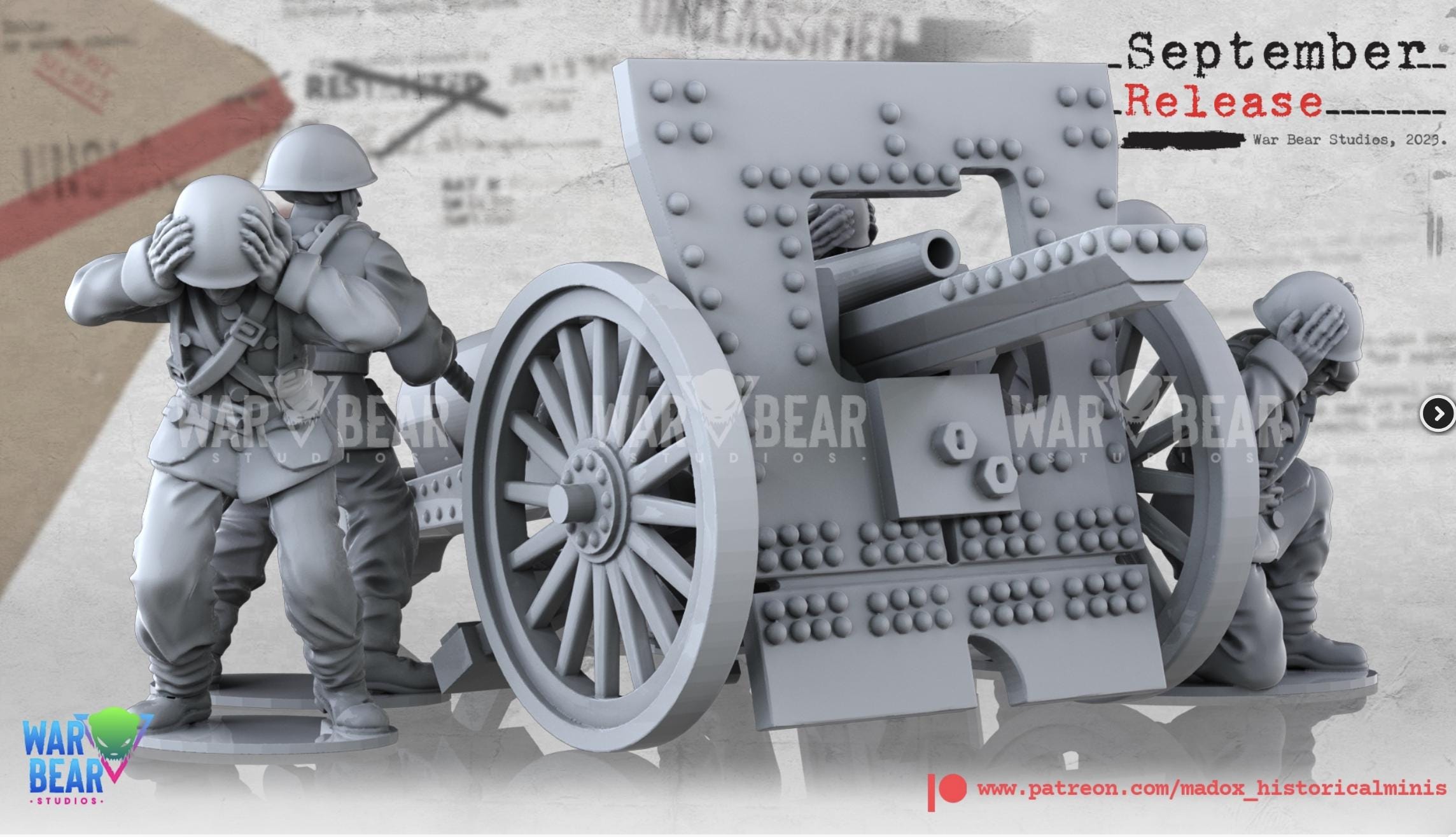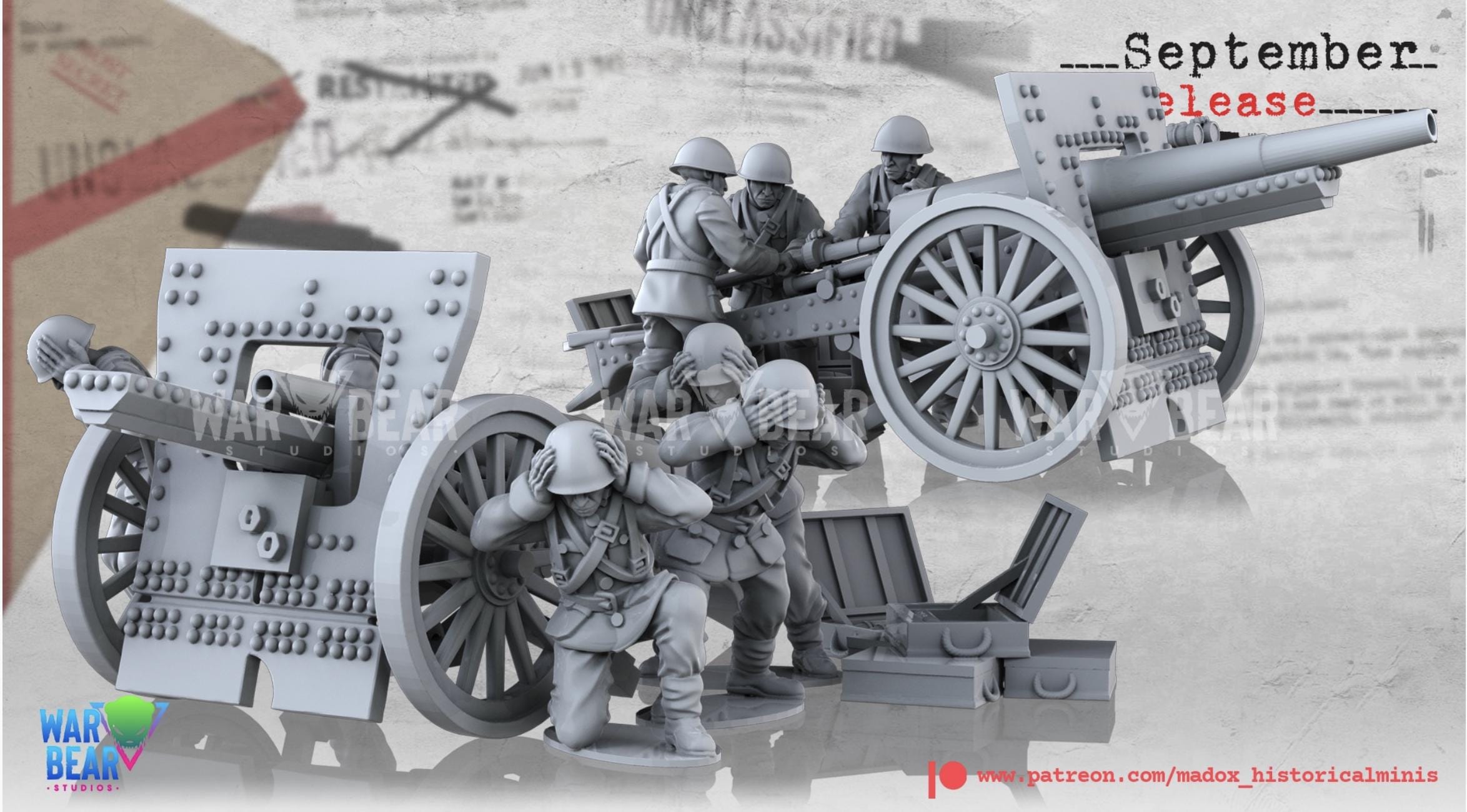 28mm World War 2- Resin Printed WWII Polish Medium artillery( 3 Pack)