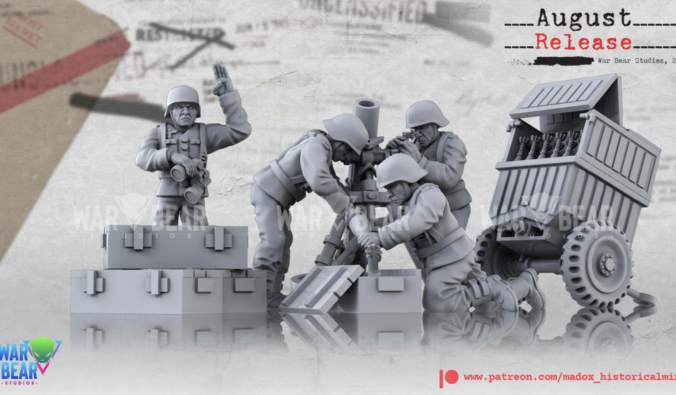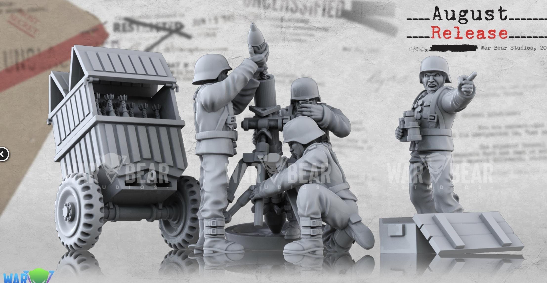 28mm World War 2- Resin Printed WWII German Heavy Mortar teams (3 Pack)