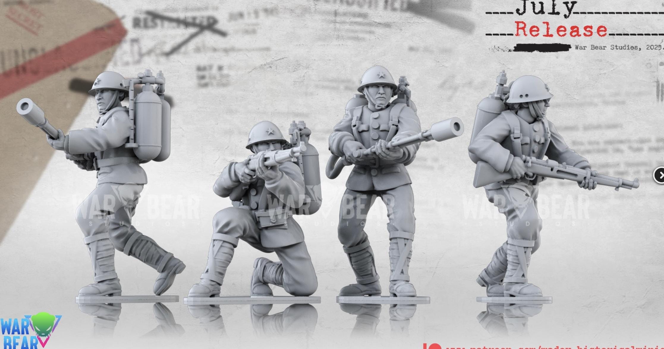 28mm World War 2- Resin Printed WWII Japanese Flame Thrower Teams (6 figures)