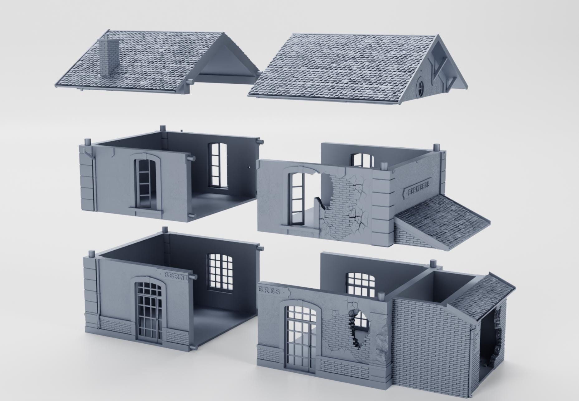 Bernieres Train Station (28mm) - undamaged+damaged (Juno beach, Normandy, D-Day, WW2)