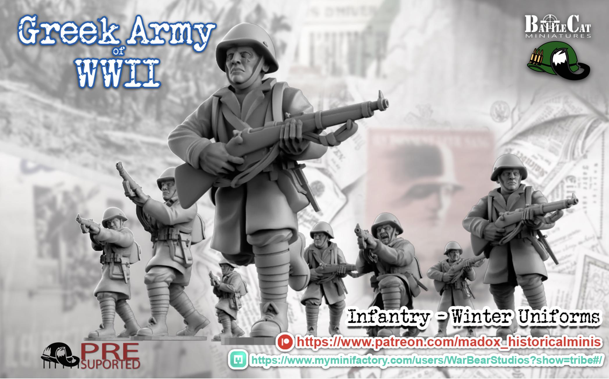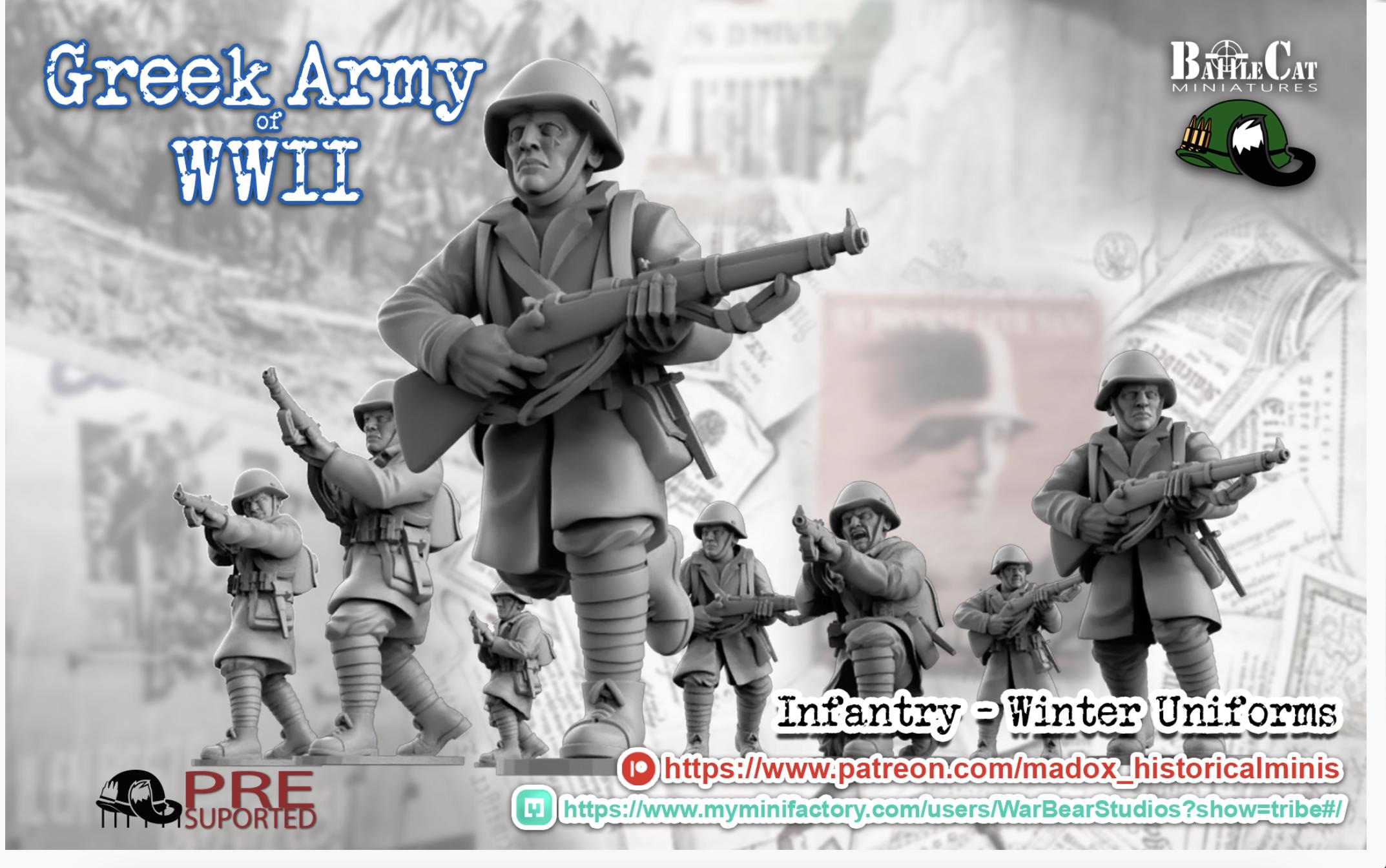 28mm World War 2- Resin PrintedWWII Greek infantry in greatcoats (14 Pack)
