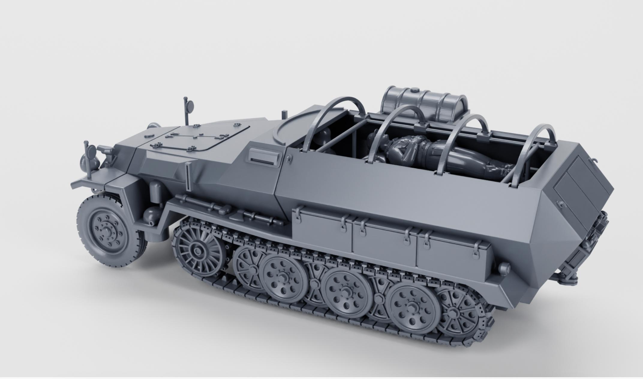 15mm, 28mm or 32mm World War 2- Resin Printed Half-track Sd.Kfz.251/8 Krankenpanzerwagen (Ambulance) + Crewmen (Germany, WW2)