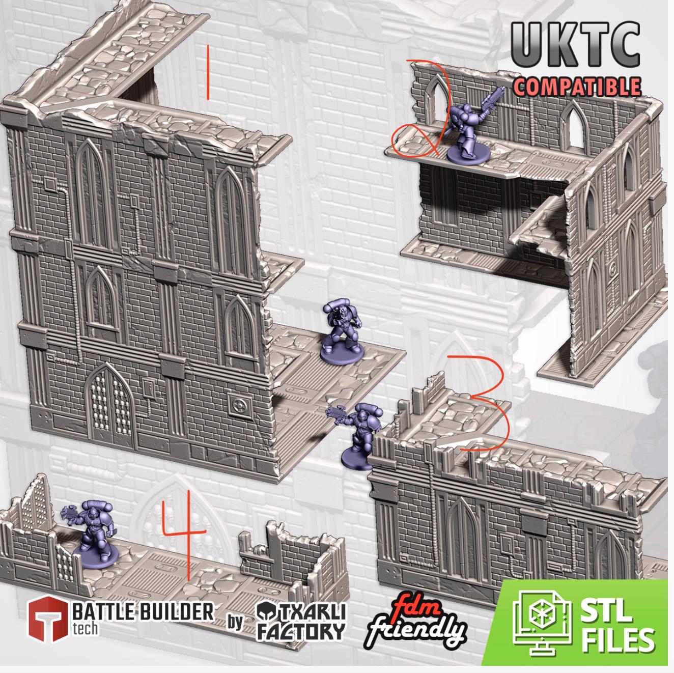 PLA Printed Terrain- CATHEDRAL RUINS uktc Compatible- 4 Pack