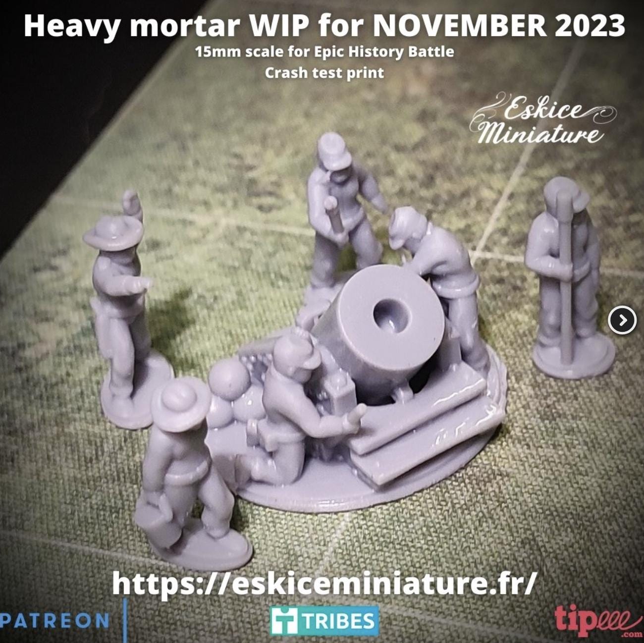 Resin Printed Miniatures- Heavy mortar with crew - 15mm for EHB-3 Mortars