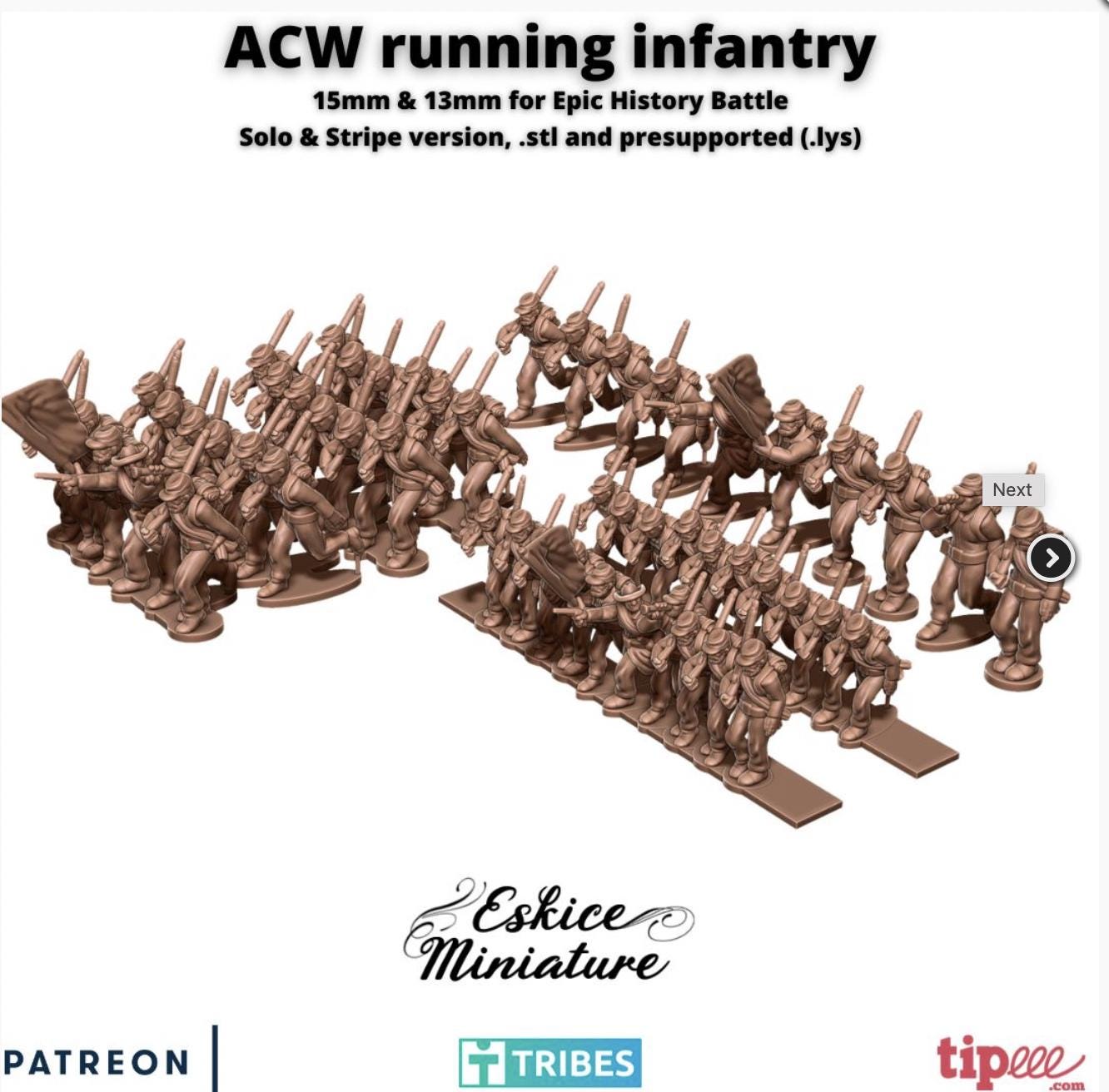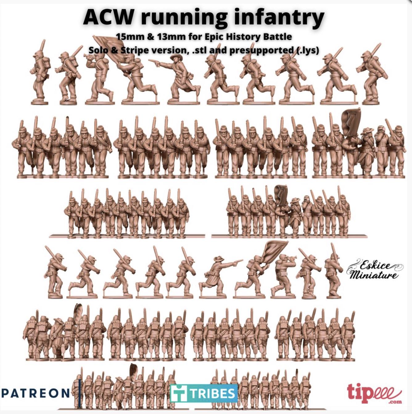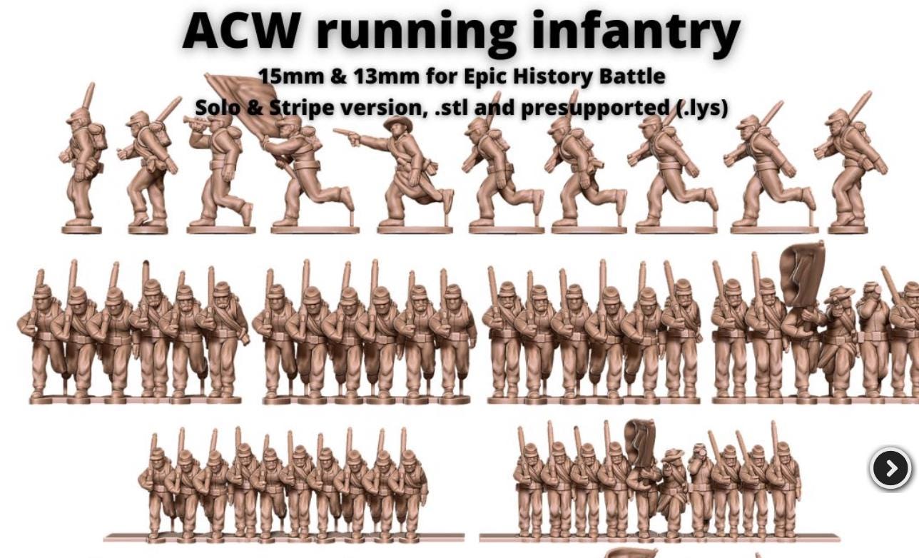 Resin Printed Miniatures- American Civil War- ACW running infantry - 15mm EHB