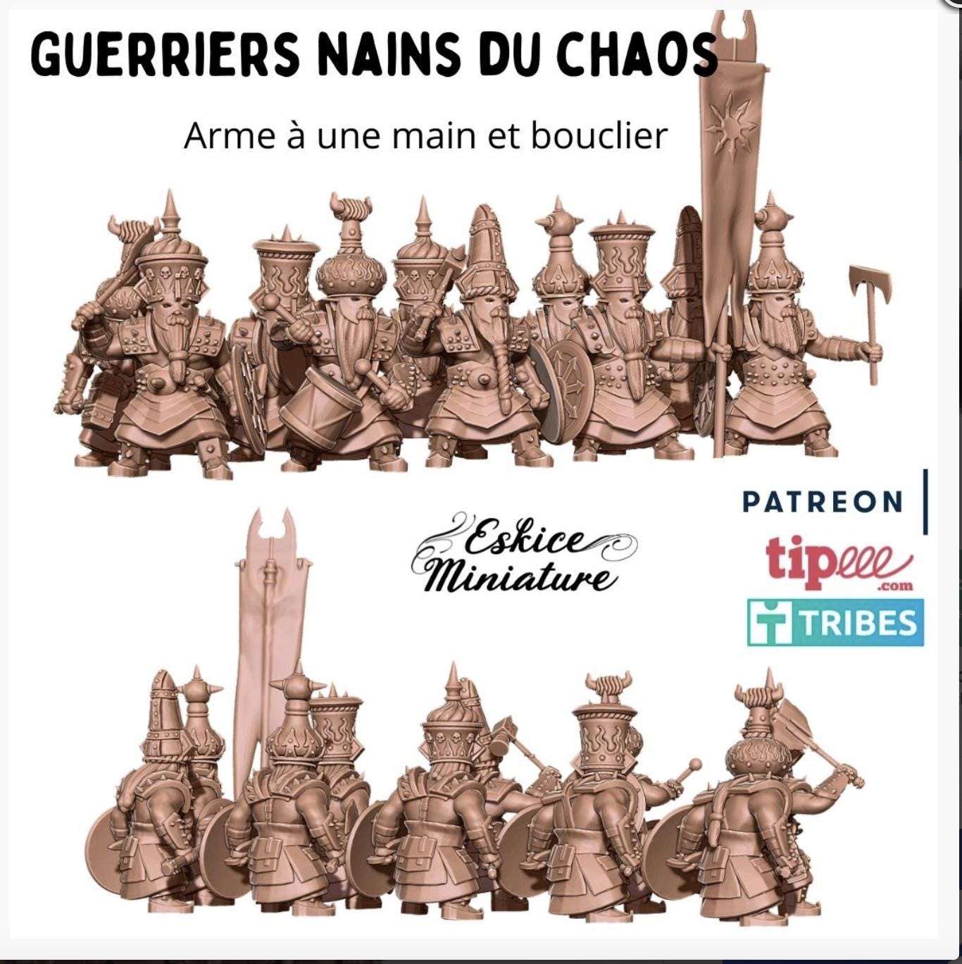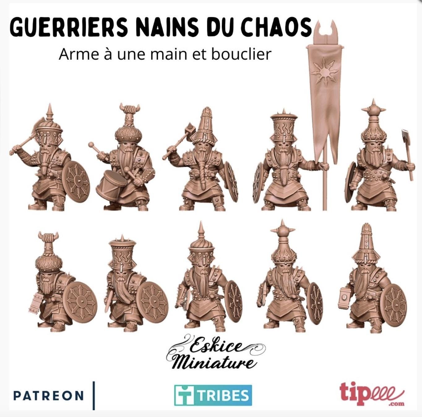 Resin Printed Miniatures- Warriors 1 hand and shield, abyssal dwarves - 28mm (Unit of 10)