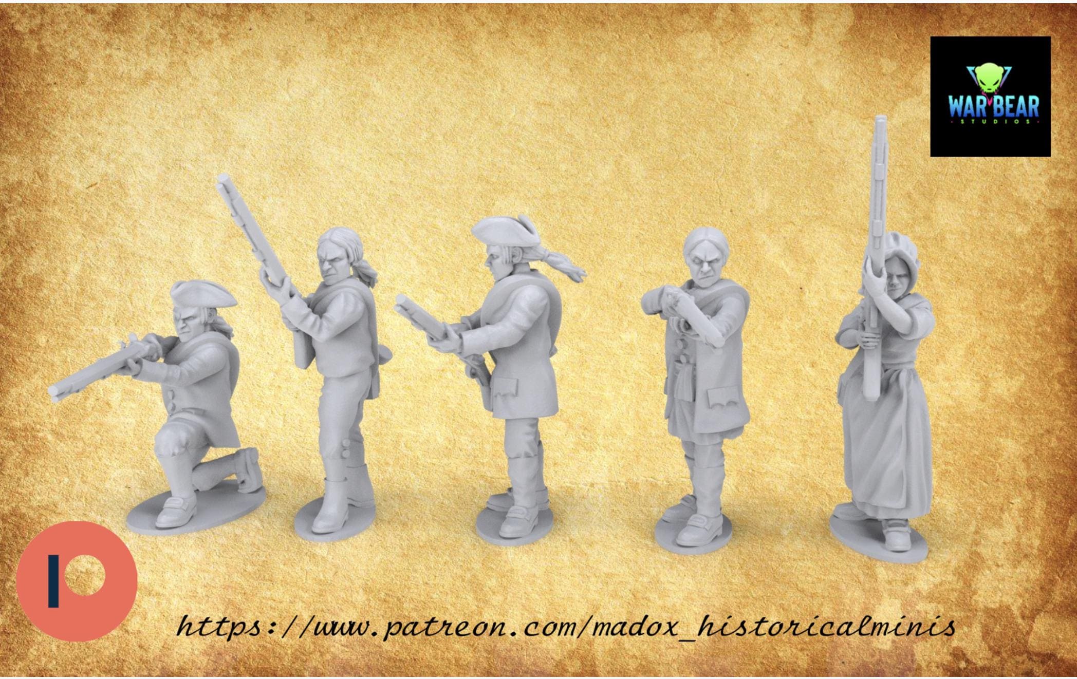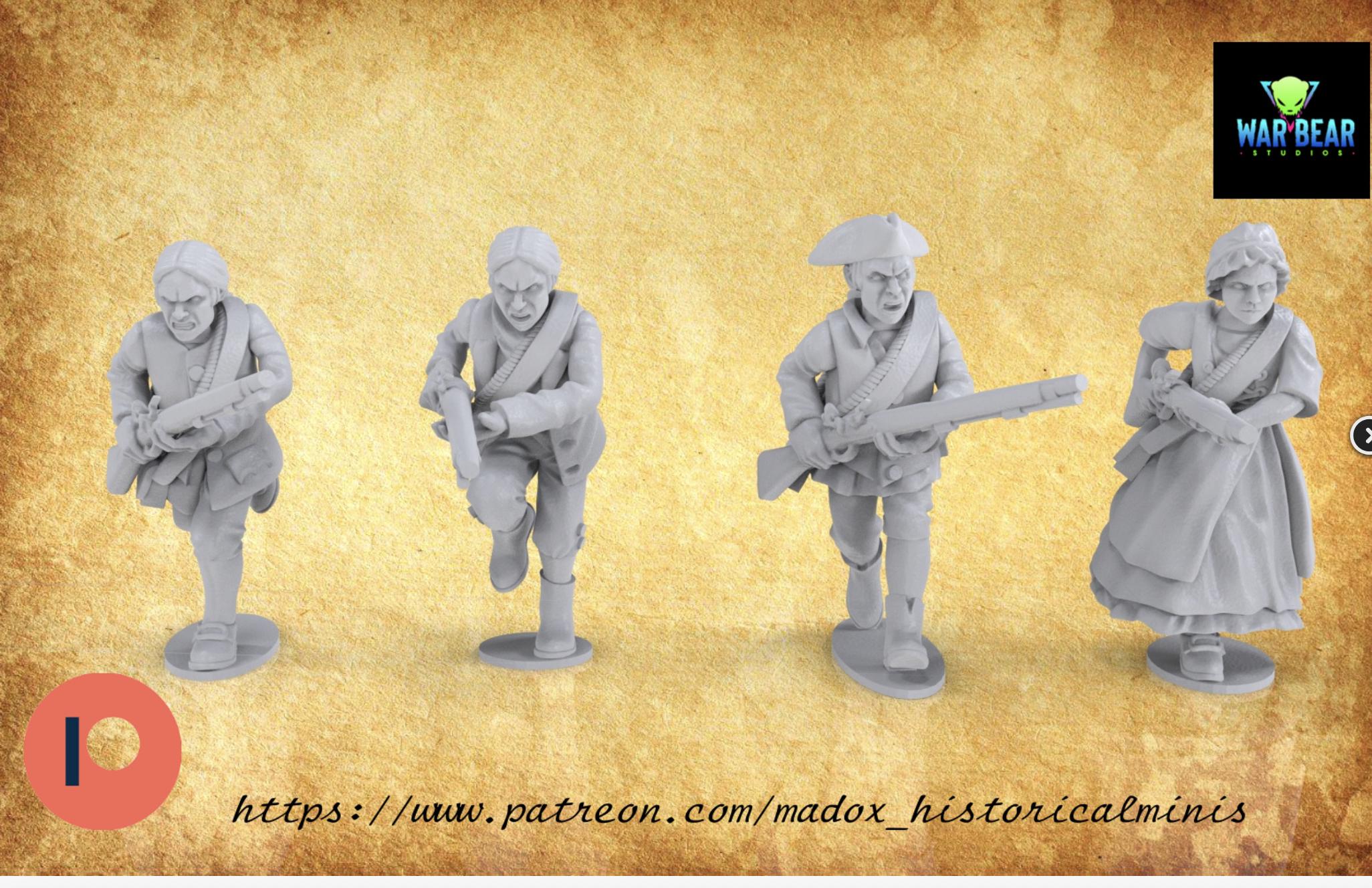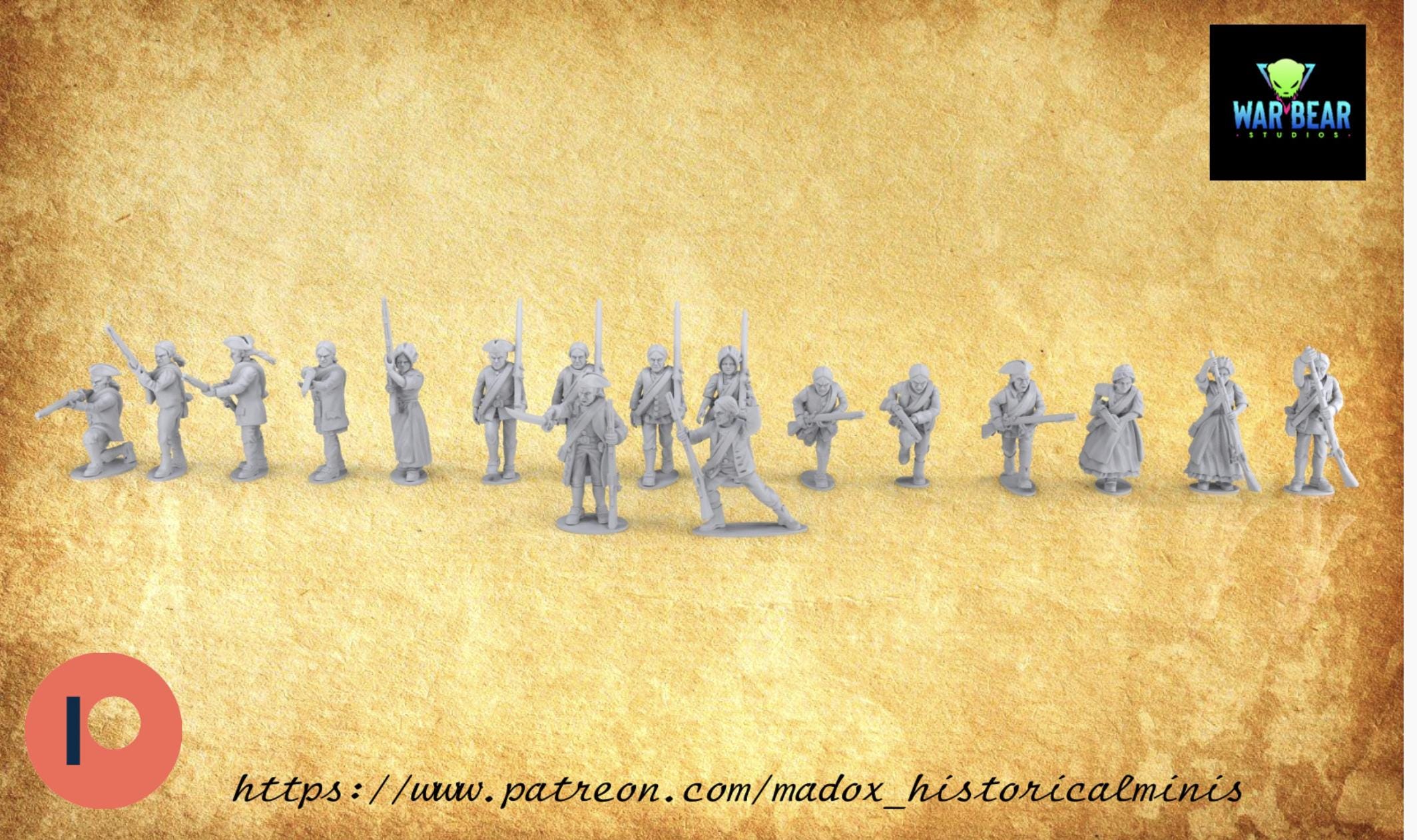 28mm Historical Gaming- Resin Printed Figures- AWI/FIW Militia in line formation (Squad of 20)