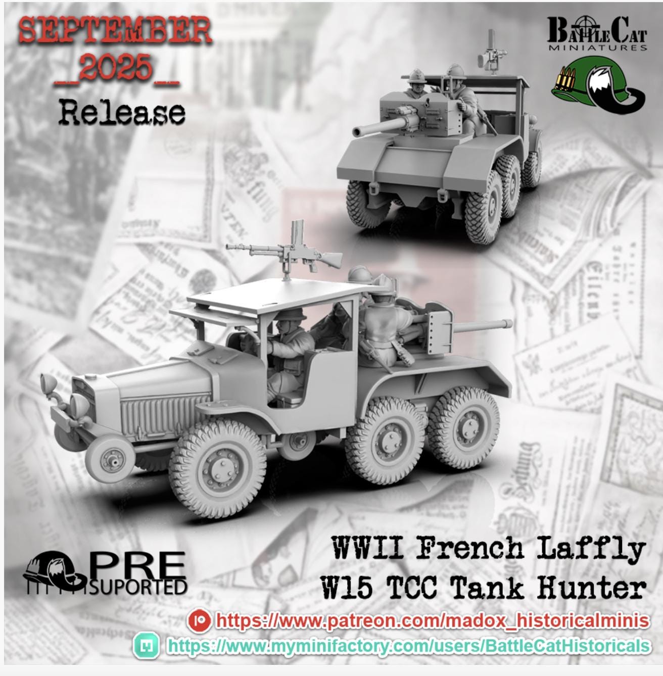28mm World War 2- Resin Printed WWII French laffly W15 TCC Tank Hunter