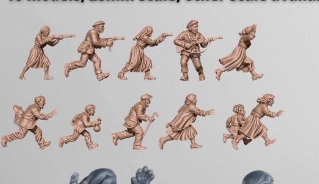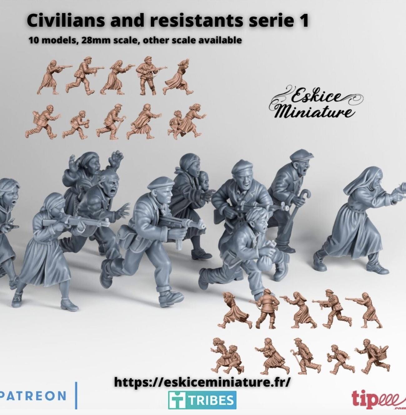 Resin Printed Miniatures-Sci Fi- Civilians and Resistants Series 1- 28mm Scale