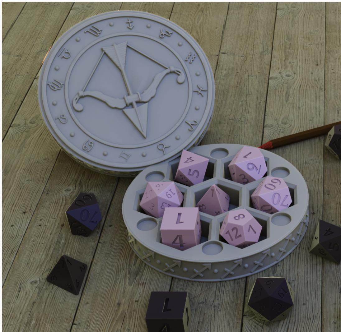 Fantasy-style diceholder to house your gaming dice.
