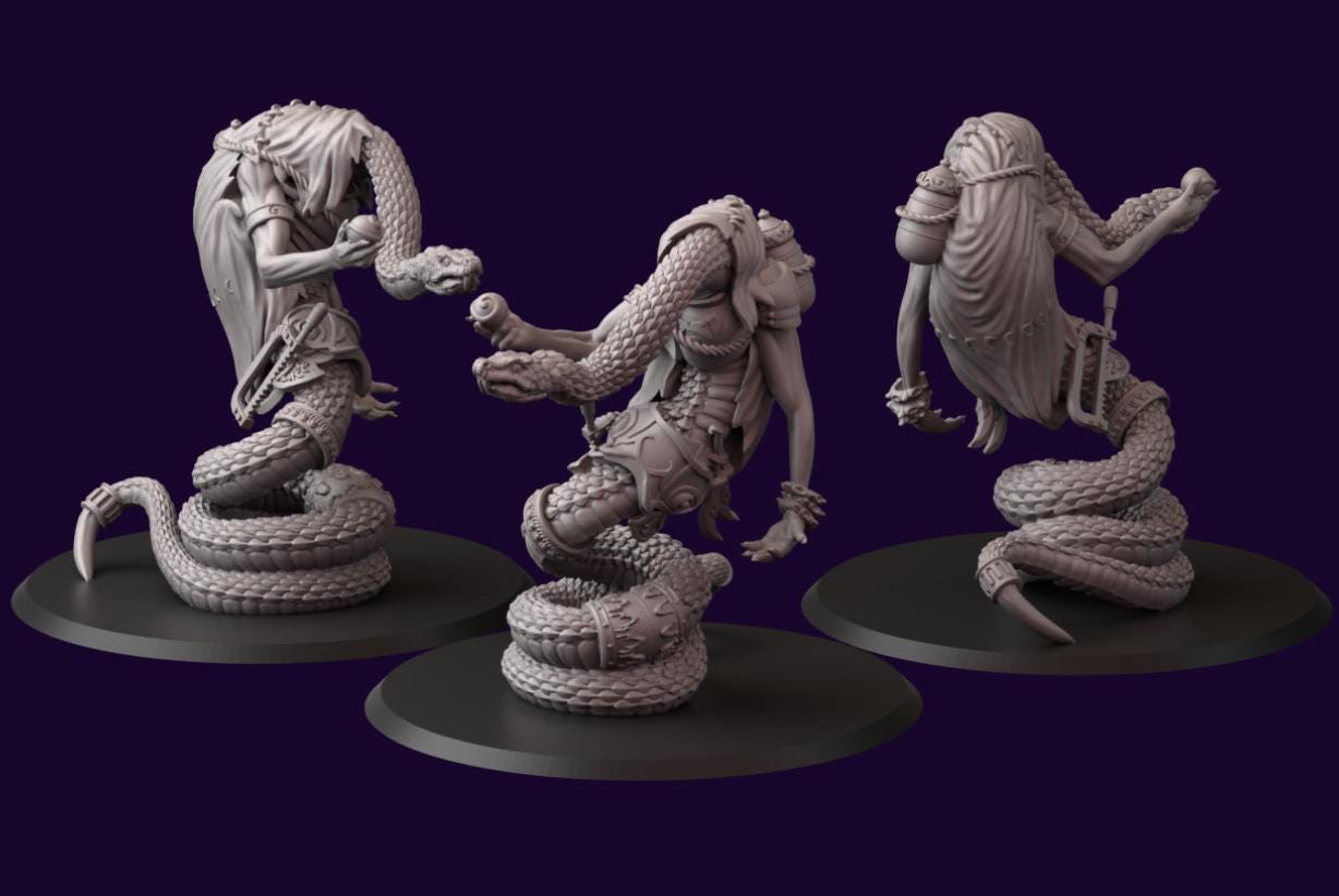 Resin Printed Miniatures- Snakemen- 3 Pack- 32mm models