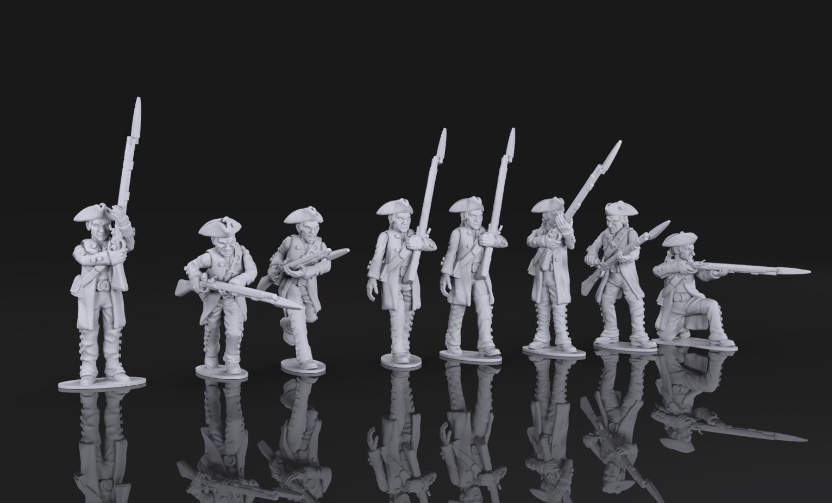 28mm Historical Gaming- Resin Printed Figures- 7 years war Prussian Militia (Squad of 20 (including drummer and officer)