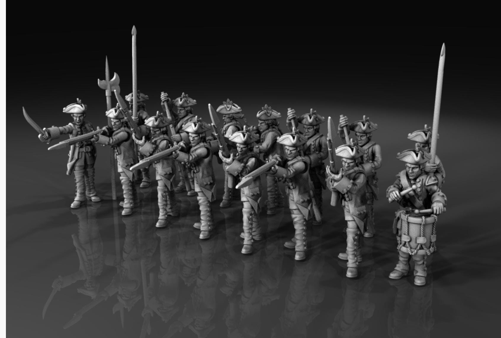 28mm Historical Gaming- Resin Printed Figures- 7 years war Austrian German Infantry (Squad of 20)
