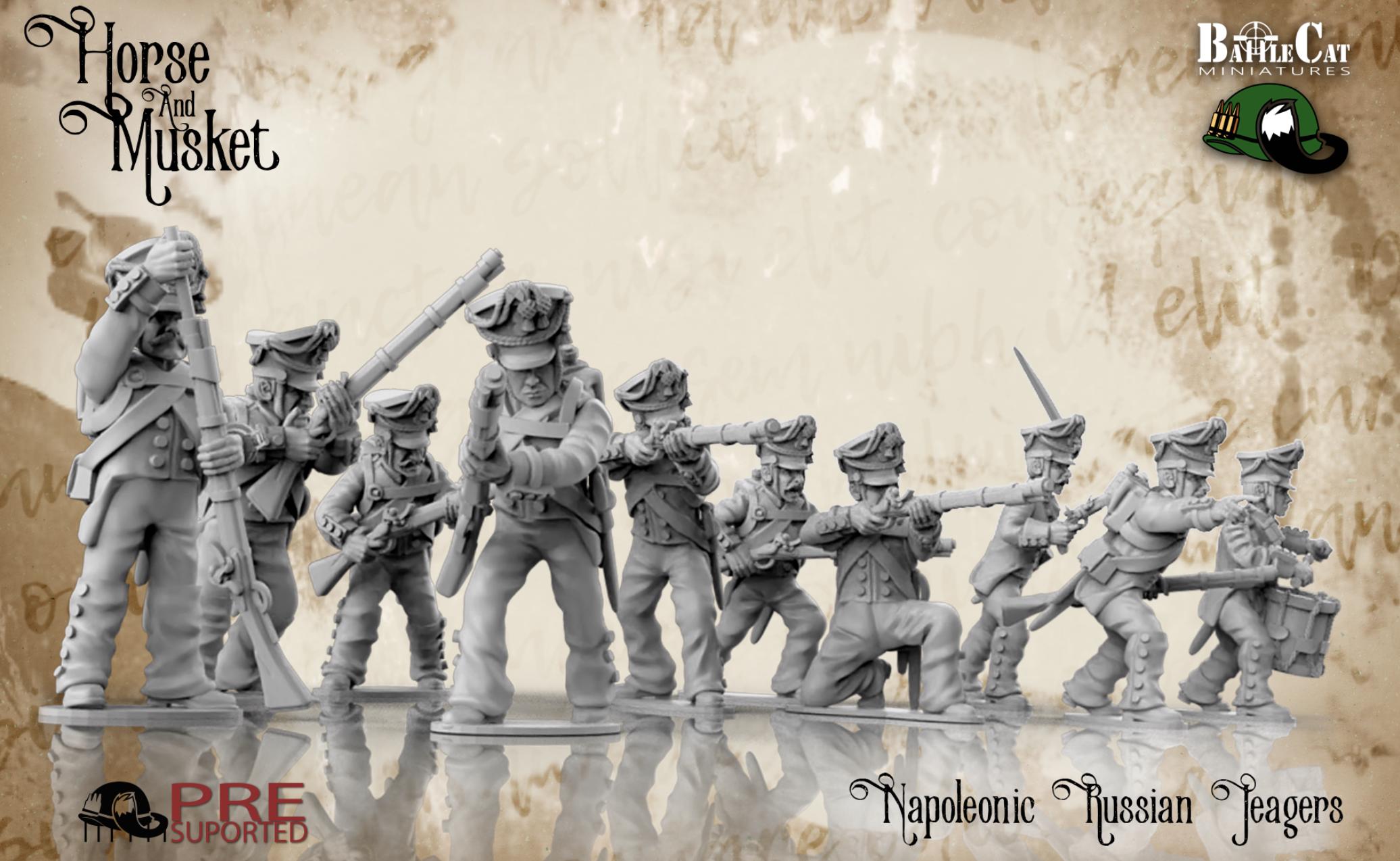 28mm Historical Gaming- Resin Printed Figures- Napoleonic 1812 Russian jaegers (Squad of 20 Including Command)