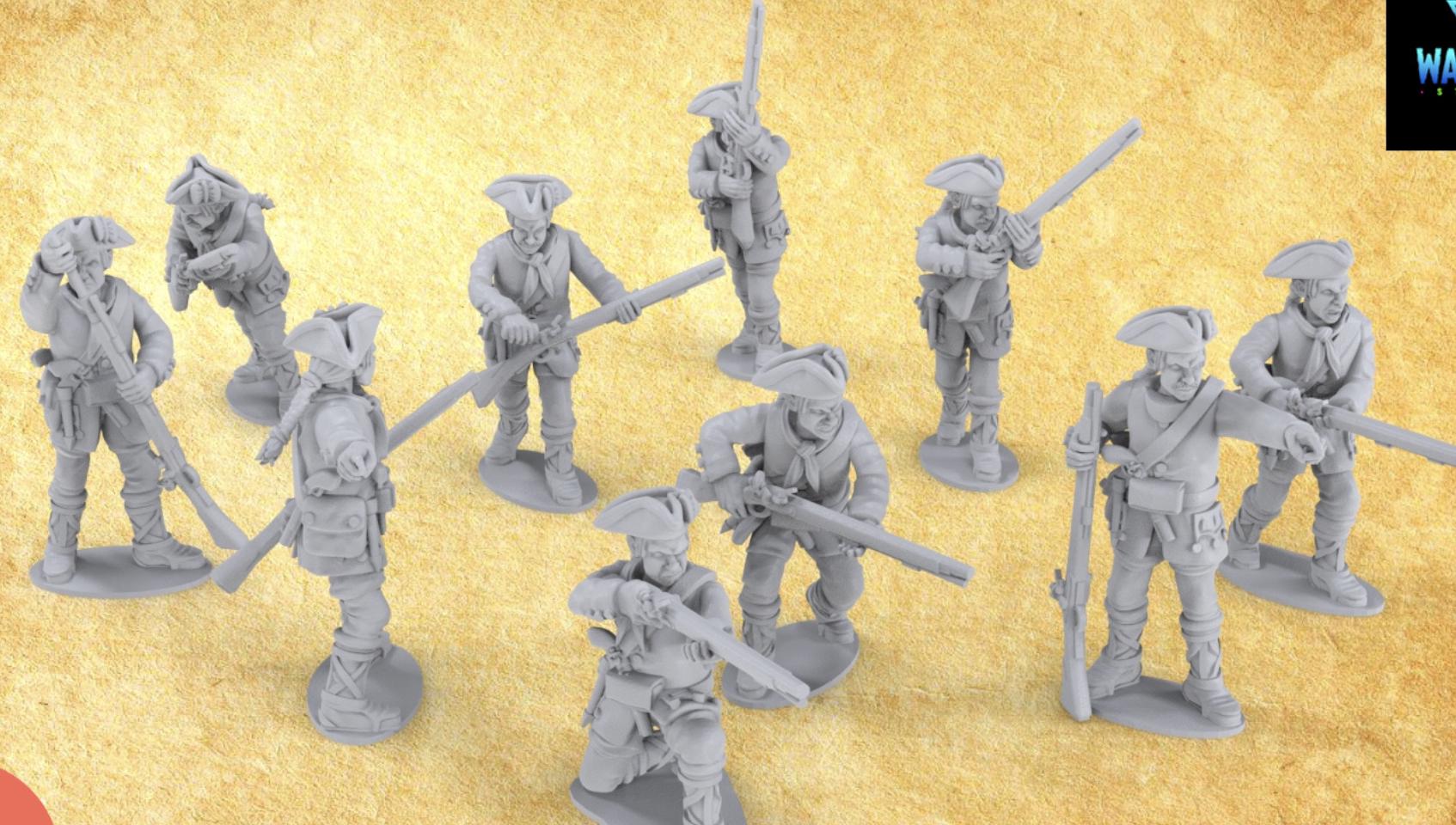 28mm Historical Gaming- Resin Printed Figures- 7 years war Spanish Light Infantry (Squad of 20)