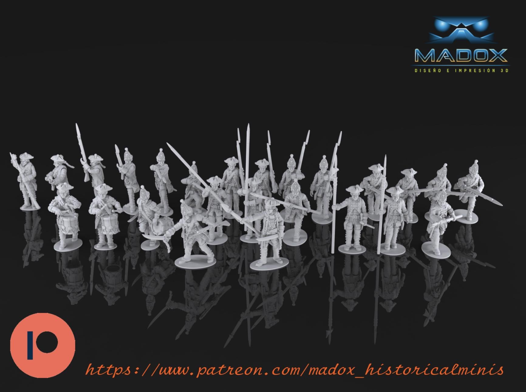 28mm Historical Gaming- Resin Printed Figures- 7 years war Saxon Infantry (Squad of 20 Including Command)