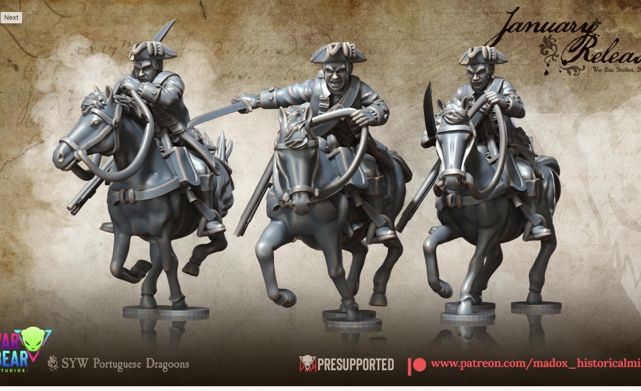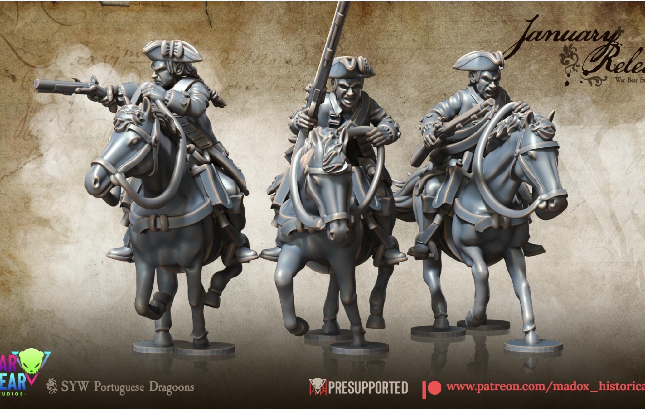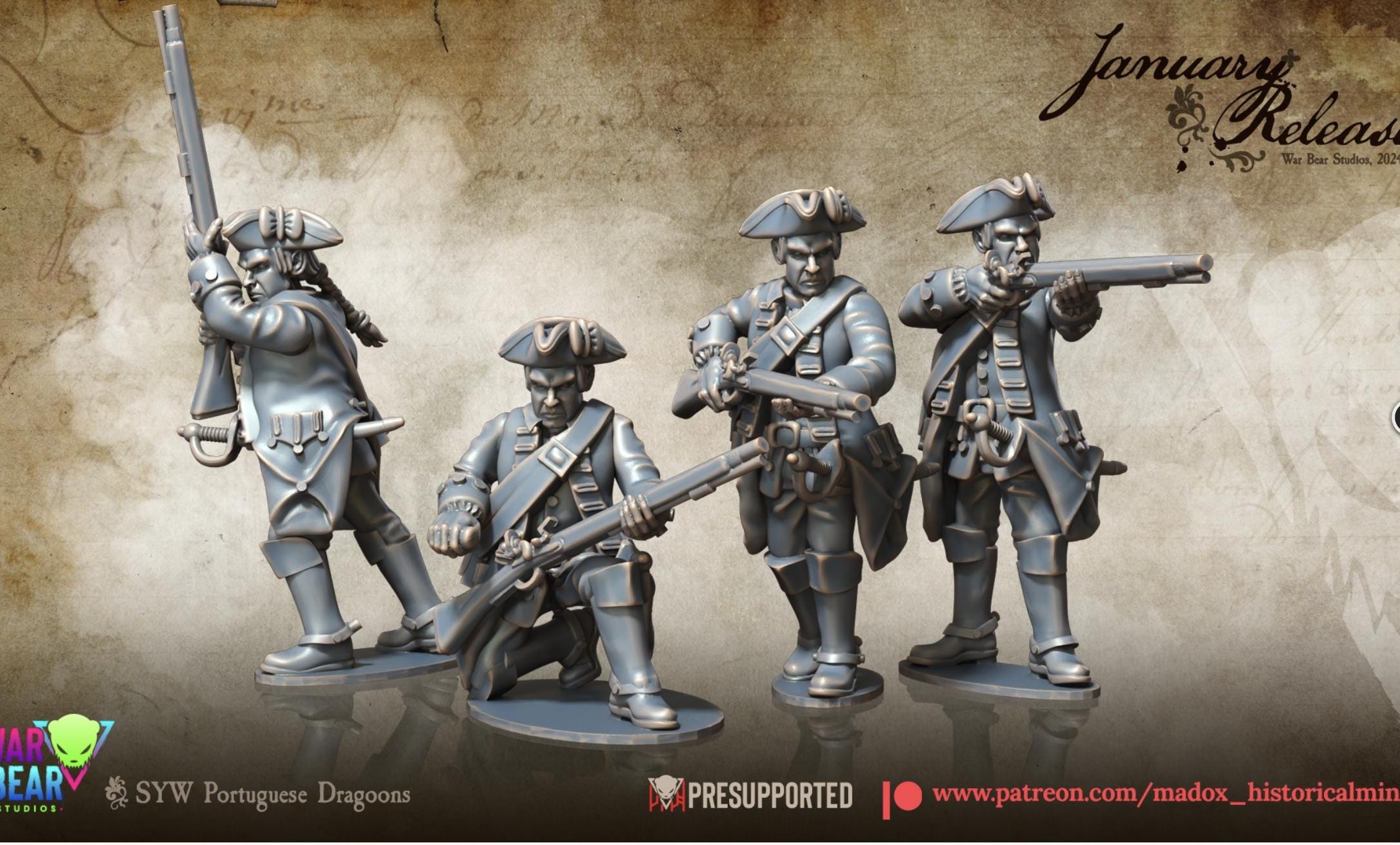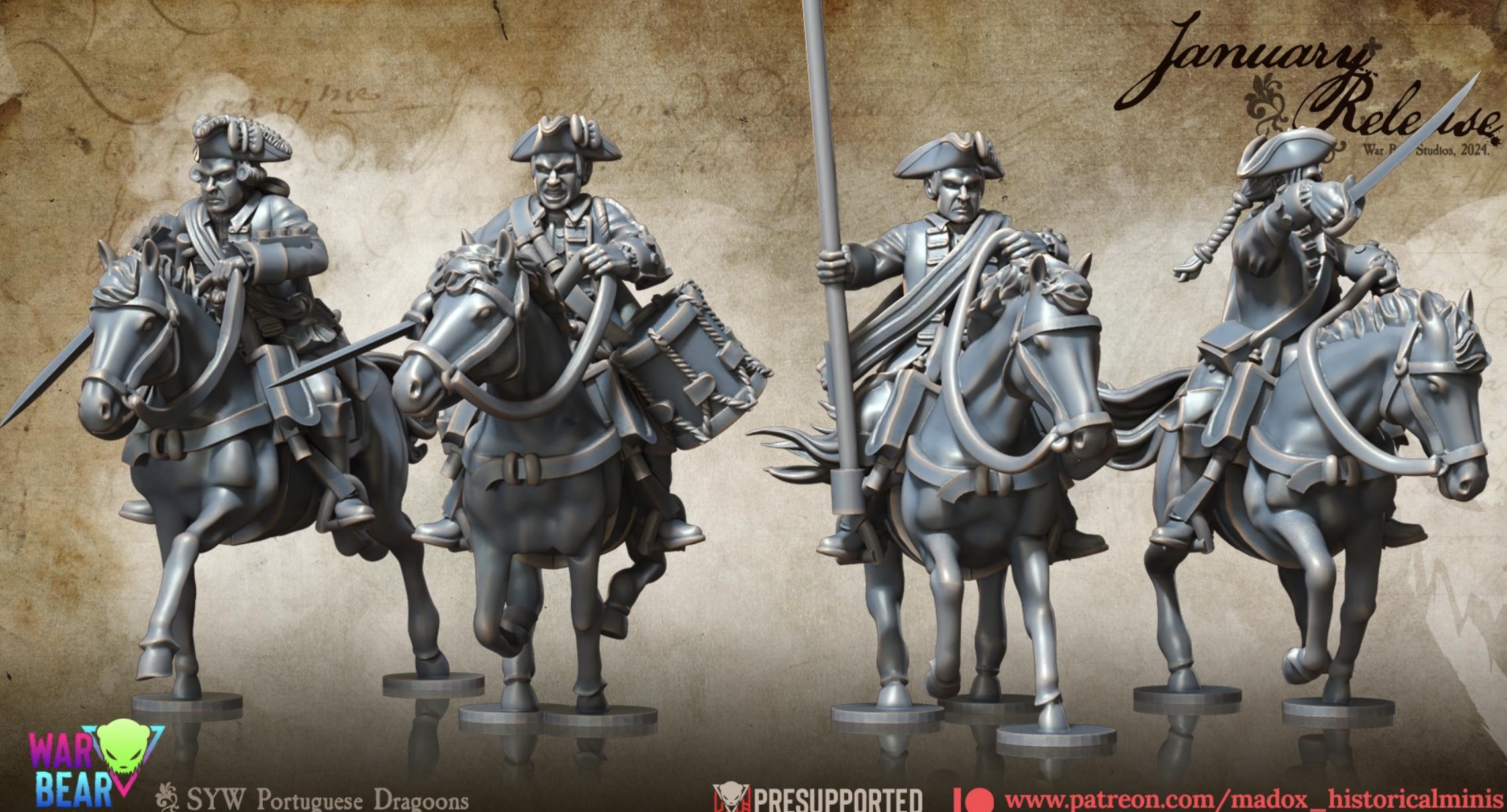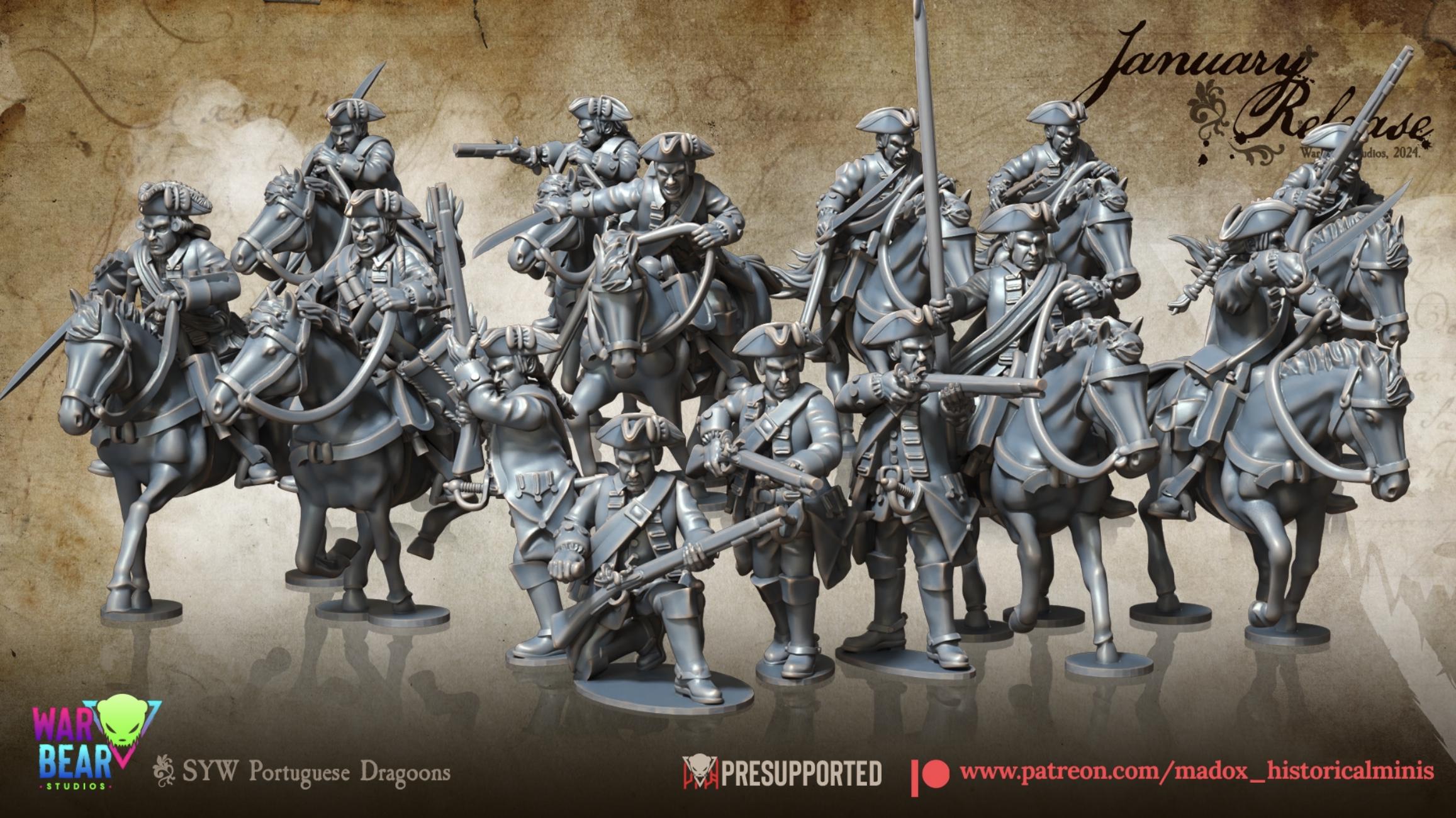 28mm Historical Gaming- Resin Printed Figures- Seven Years War Portuguese Dragoons (Squad of 10)