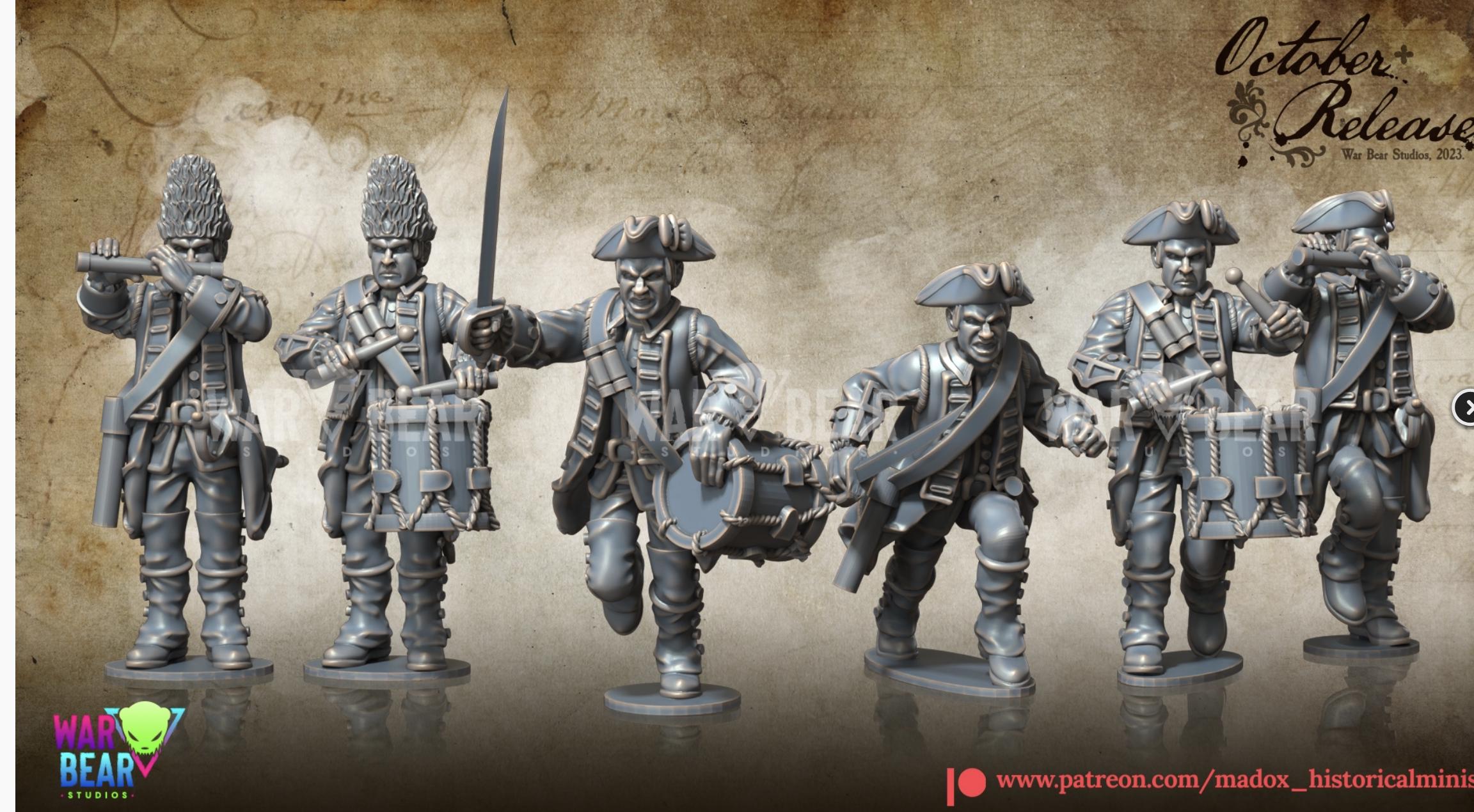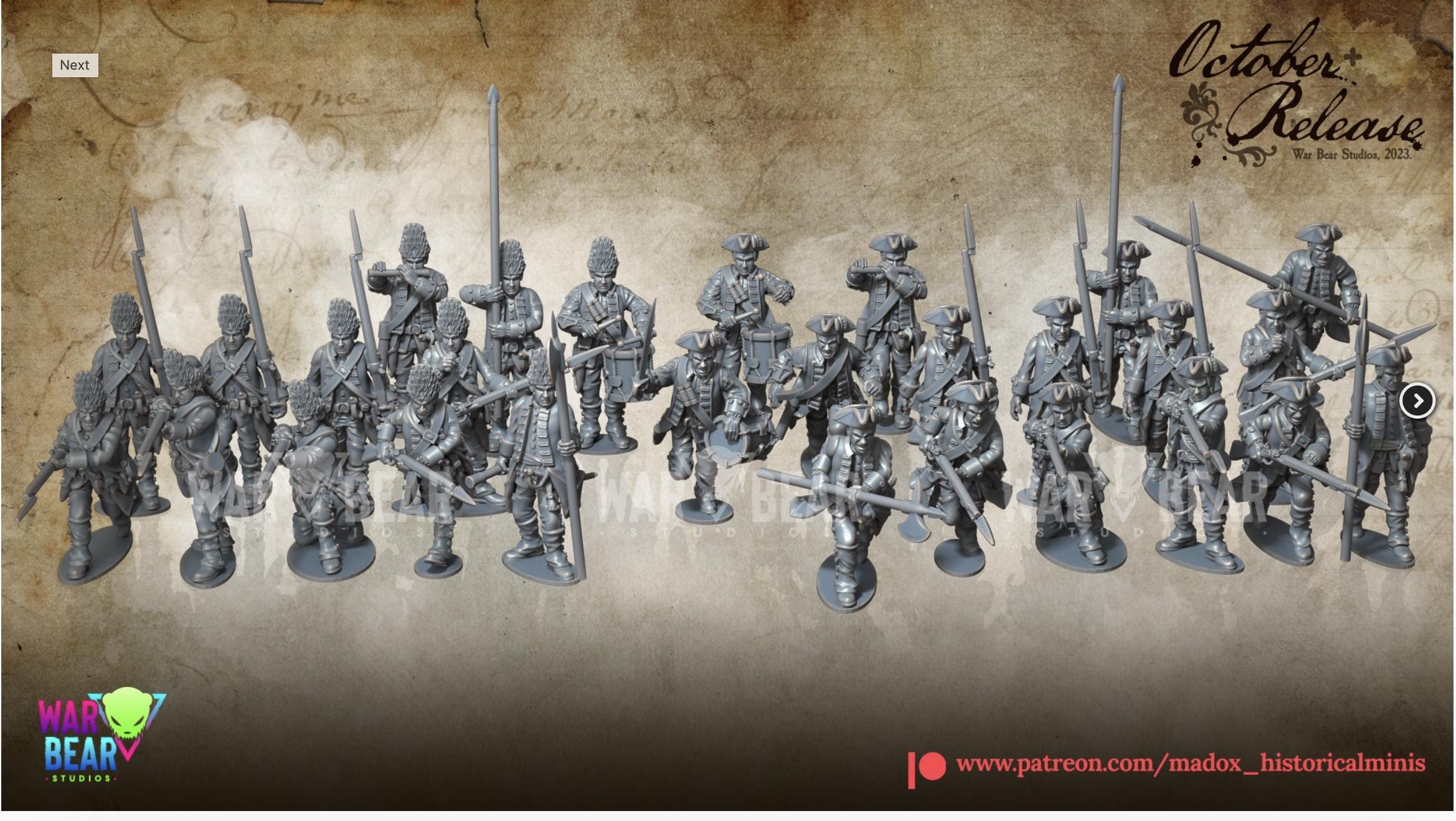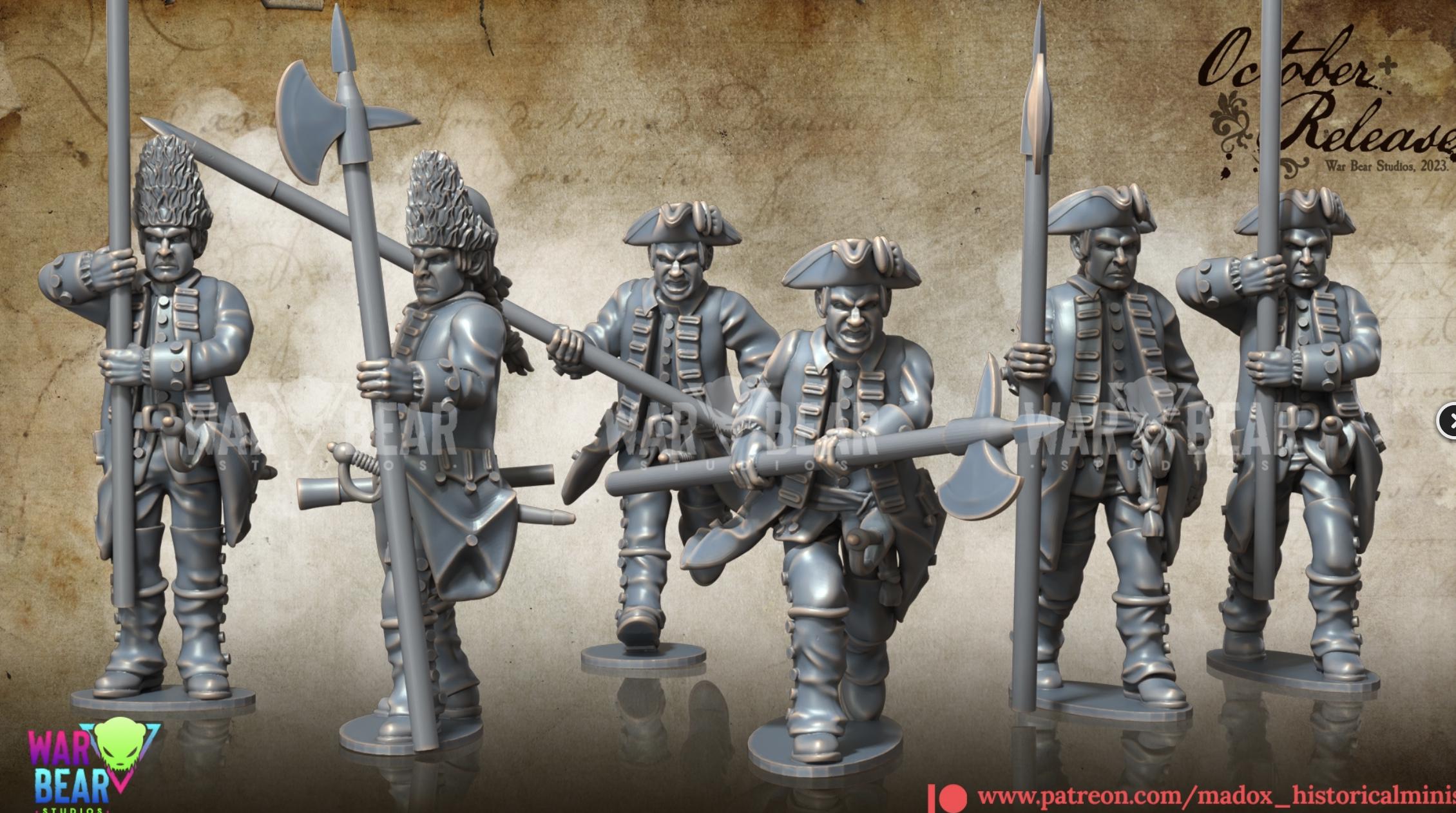 28mm Historical Gaming- Resin Printed Figures- 7 years war Portugese Infantry (Squad of 20 Including Command)