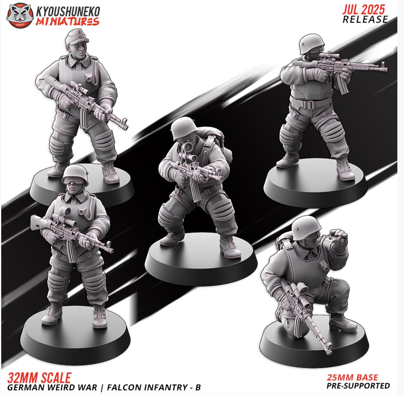28mm Resin Printed Post-Modern Warfare - German Weird War | Falcon Infantry - B ww2 Squad of 5
