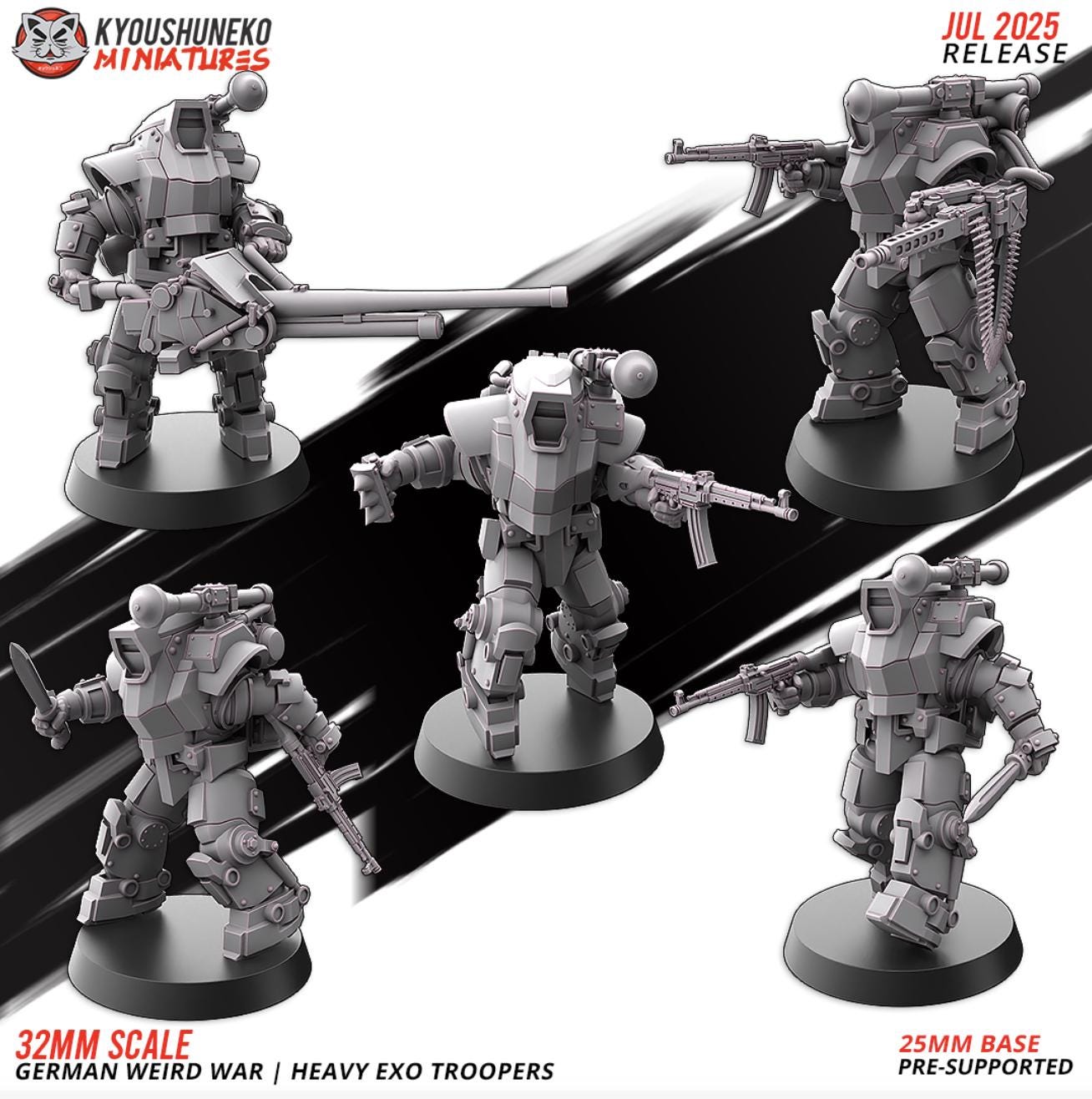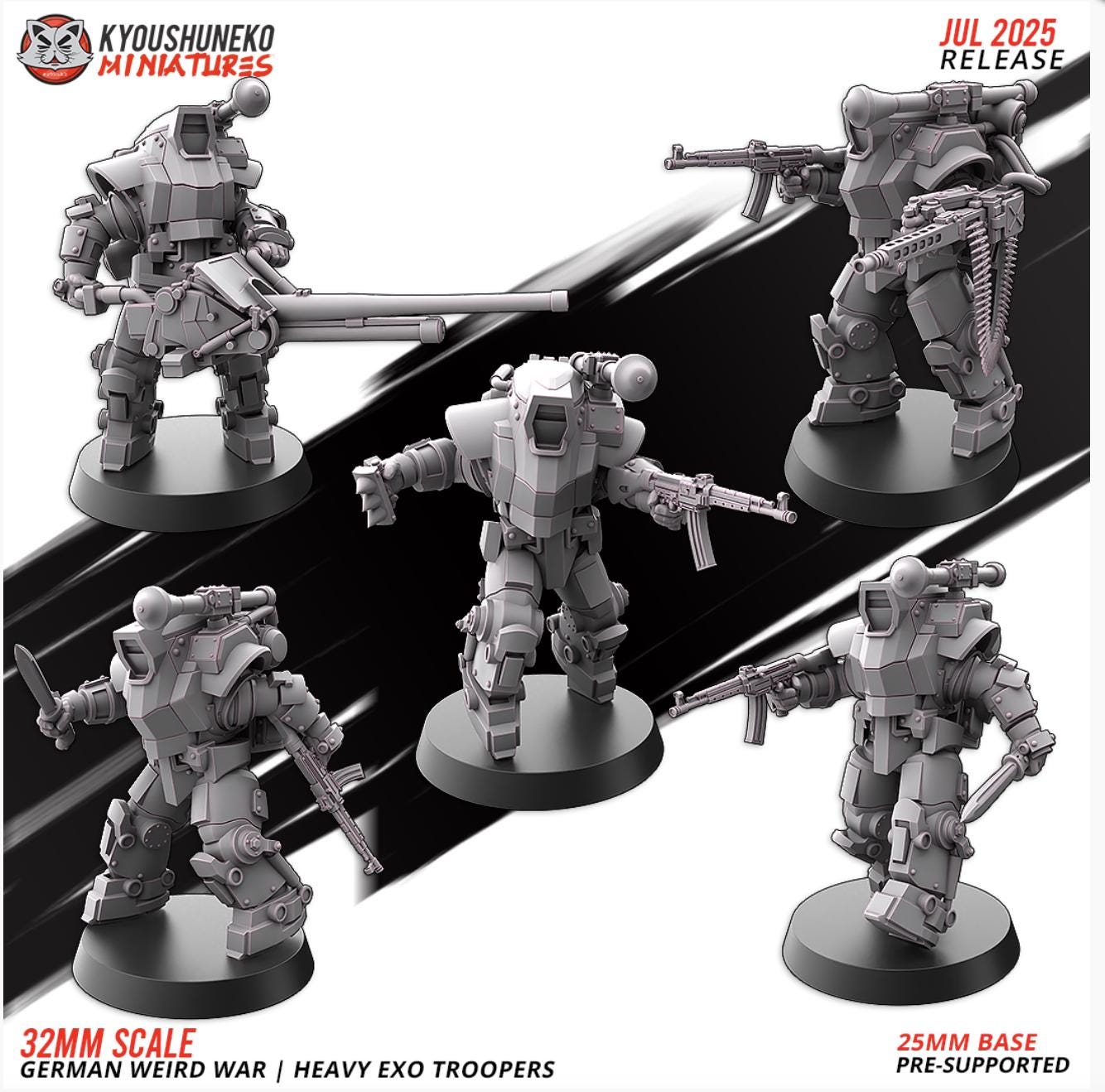 28mm Resin Printed Post-Modern Warfare - German Weird War | Heavy Exo Trooper-Squad of 5