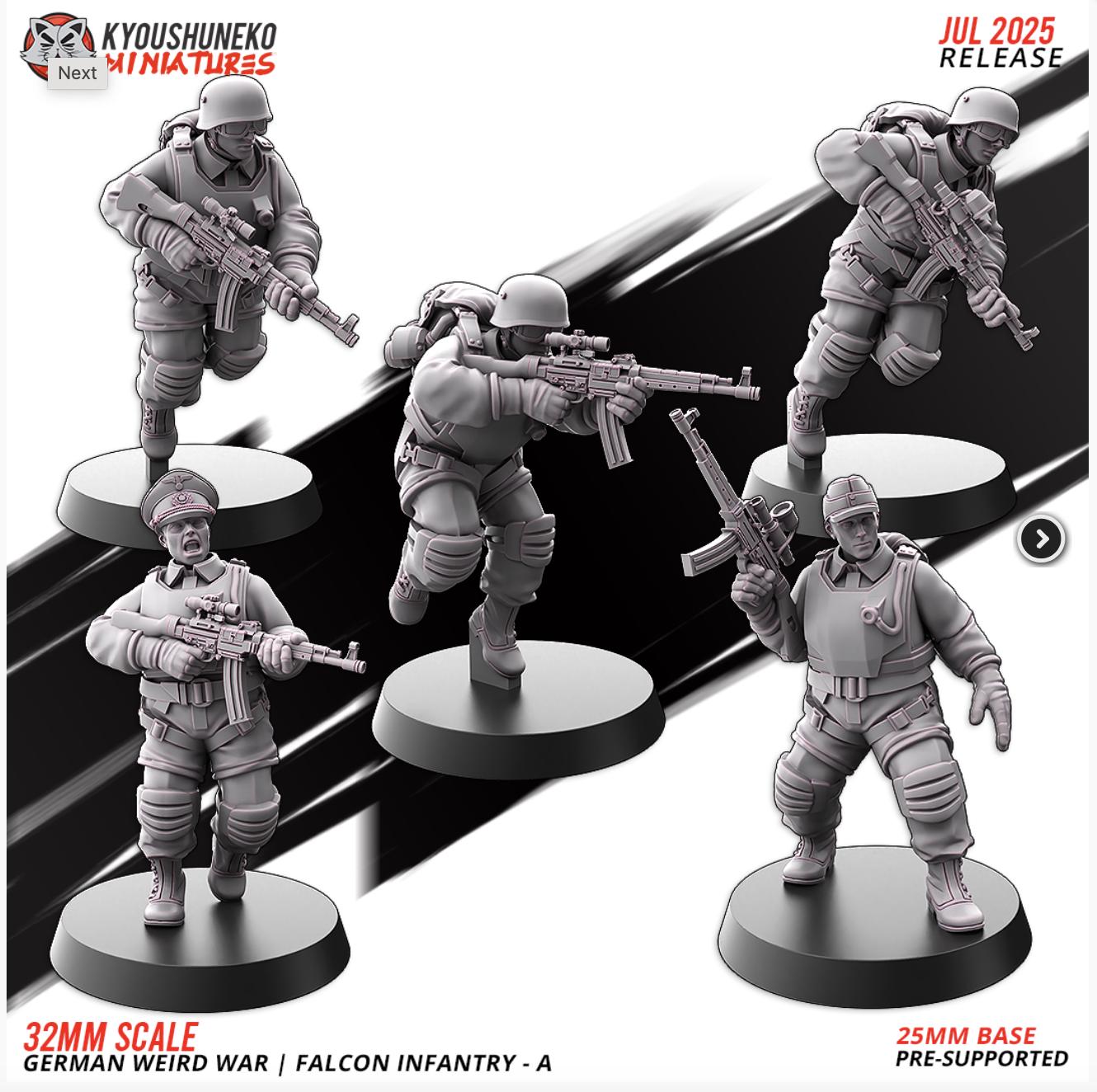 28mm Resin Printed Post-Modern Warfare - German Weird War | Falcon Infantry - A ww2 Squad of 5