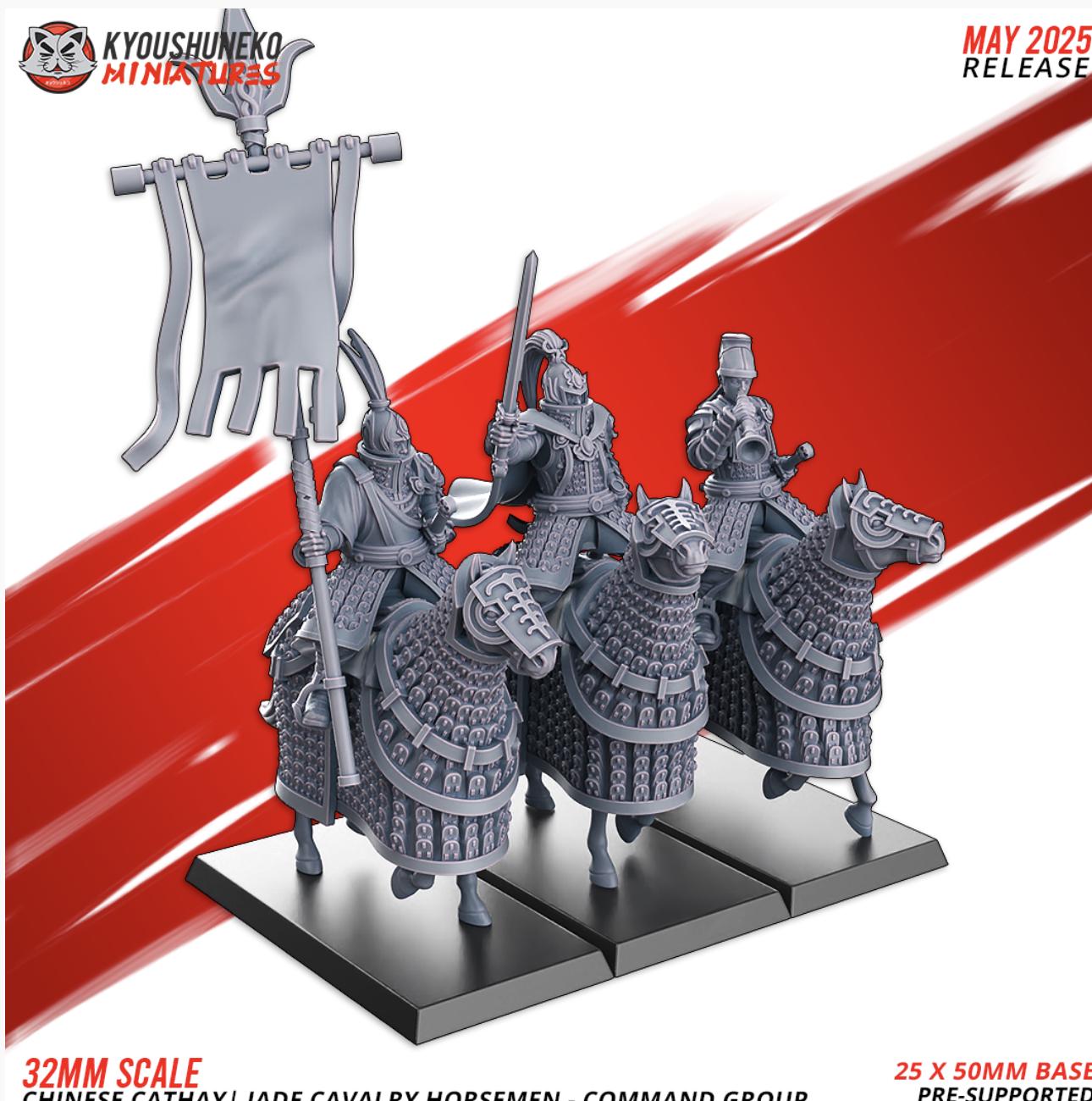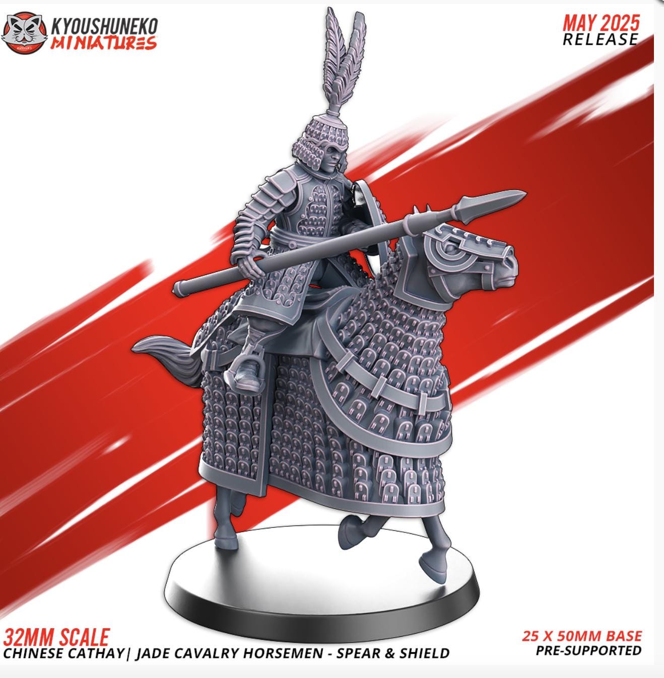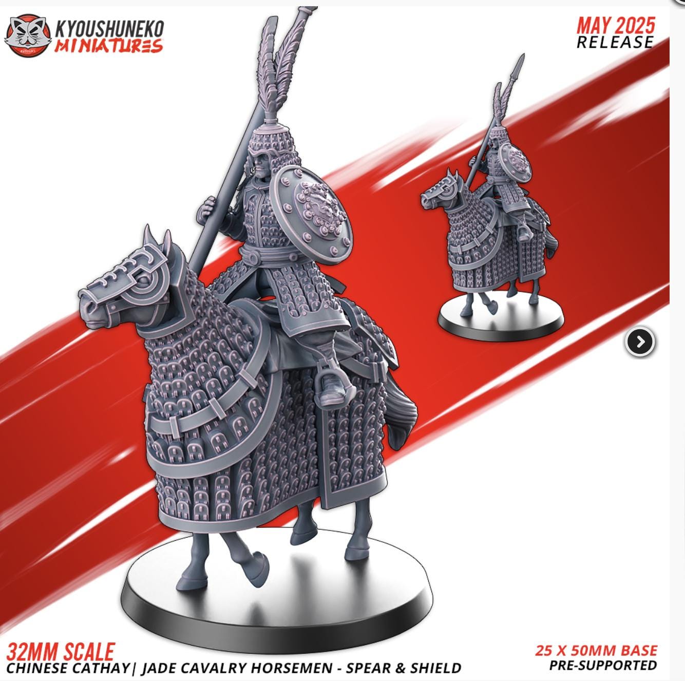 Resin Printed Fantasy - Jade Cavalry Horsemen - Spear & Shield | Chinese Cathay