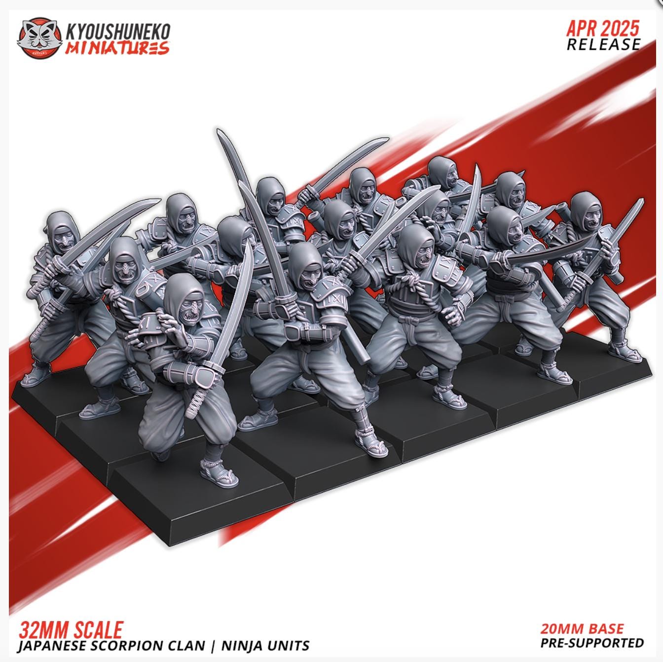 Resin Printed Fantasy - Ninja Units | Japanese Scorpion Clan-Squad of 15