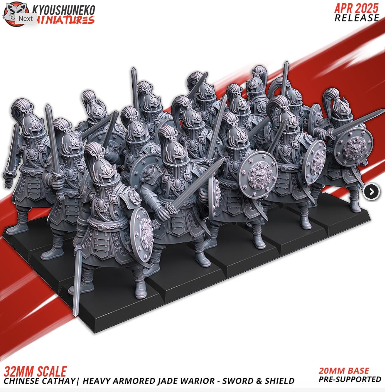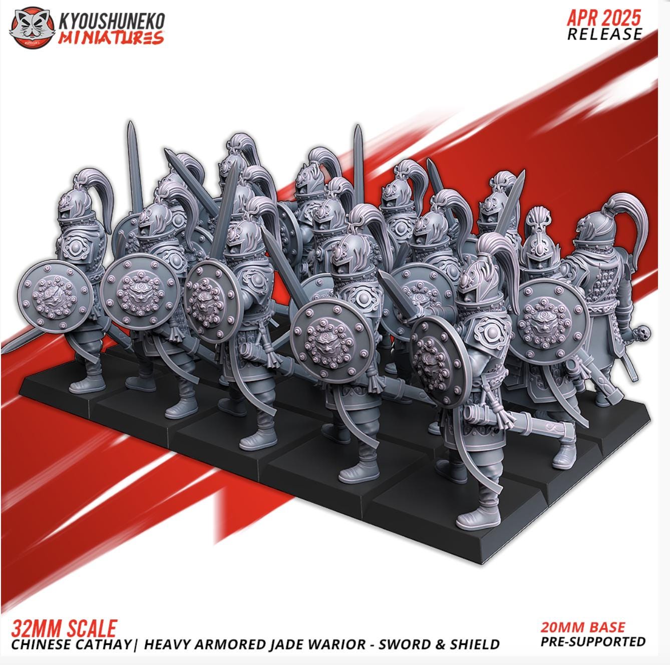Resin Printed Fantasy - Heavy Armored Jade Warriors - Sword and Shield | Chinese Cathay-Squad of 15