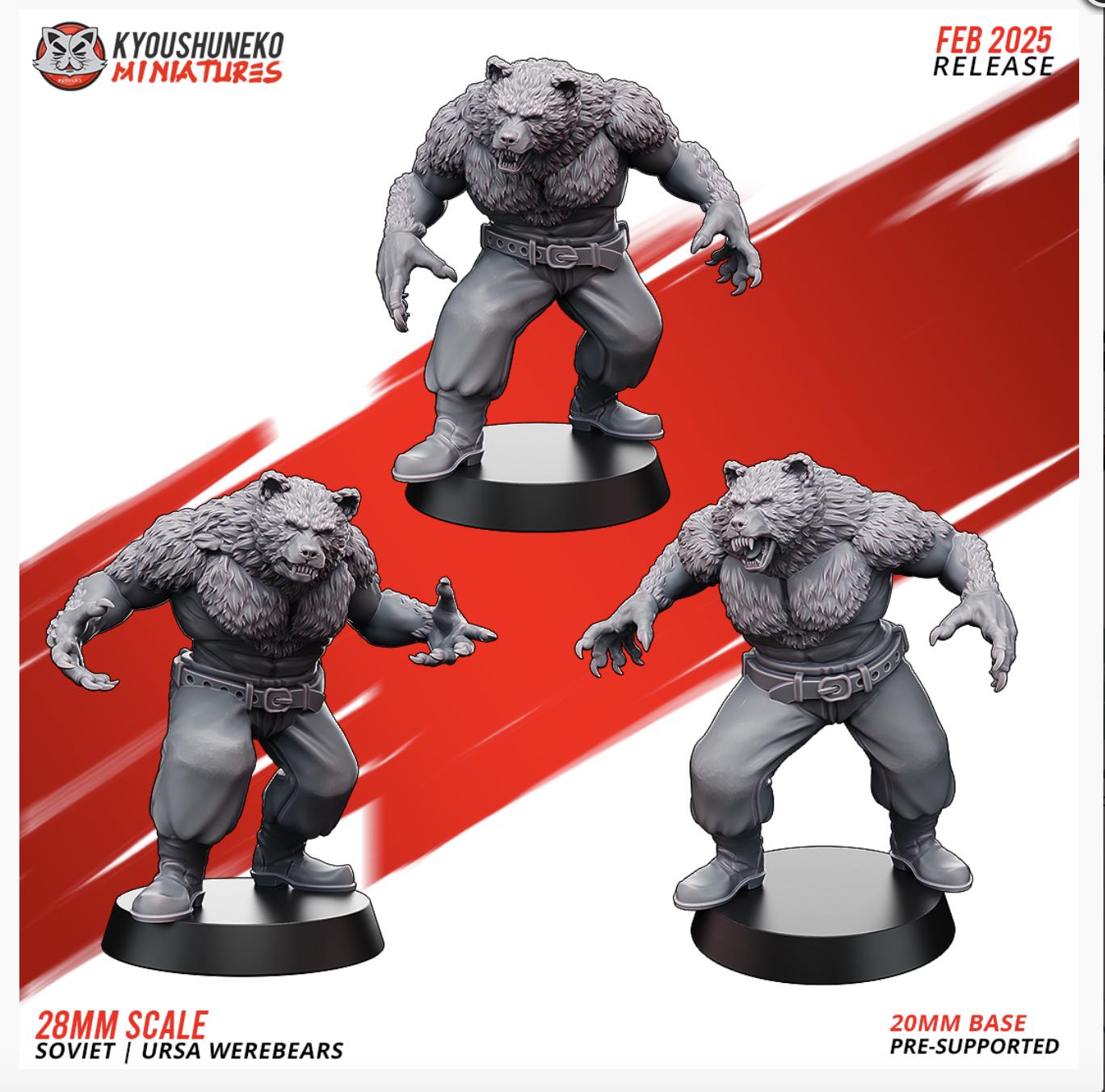 28mm Resin Printed Post-Modern Warfare - Soviet | Ursa Werebear ww2 Squad of 5