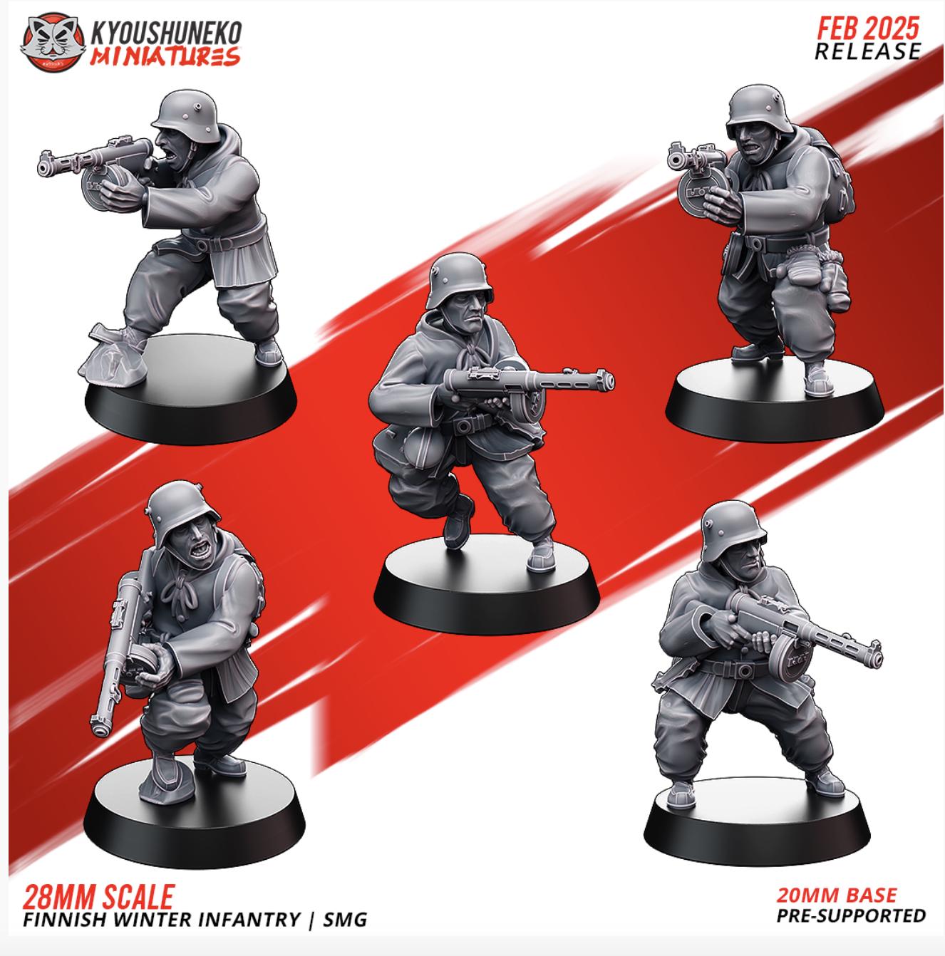 28mm Resin Printed Second World War - SMG | Finnish Winter Infantry ww2-Squad of 5